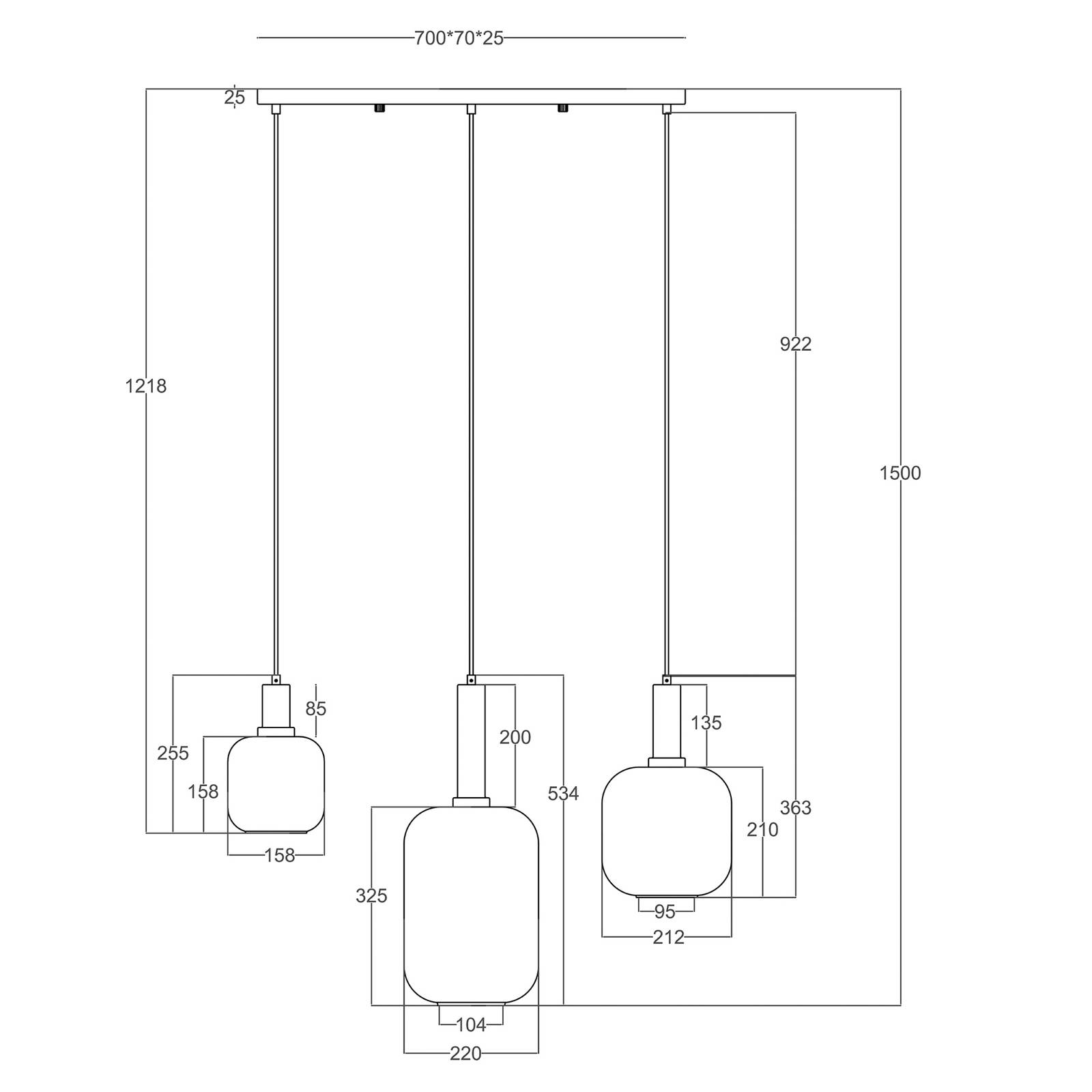 Näve Závěsné světlo Fumo kouřové sklo 3 zdroje lineární, Obývací pokoj / jídelna, železo, sklo, E27, 40W, P: 70 cm, L: 22 cm