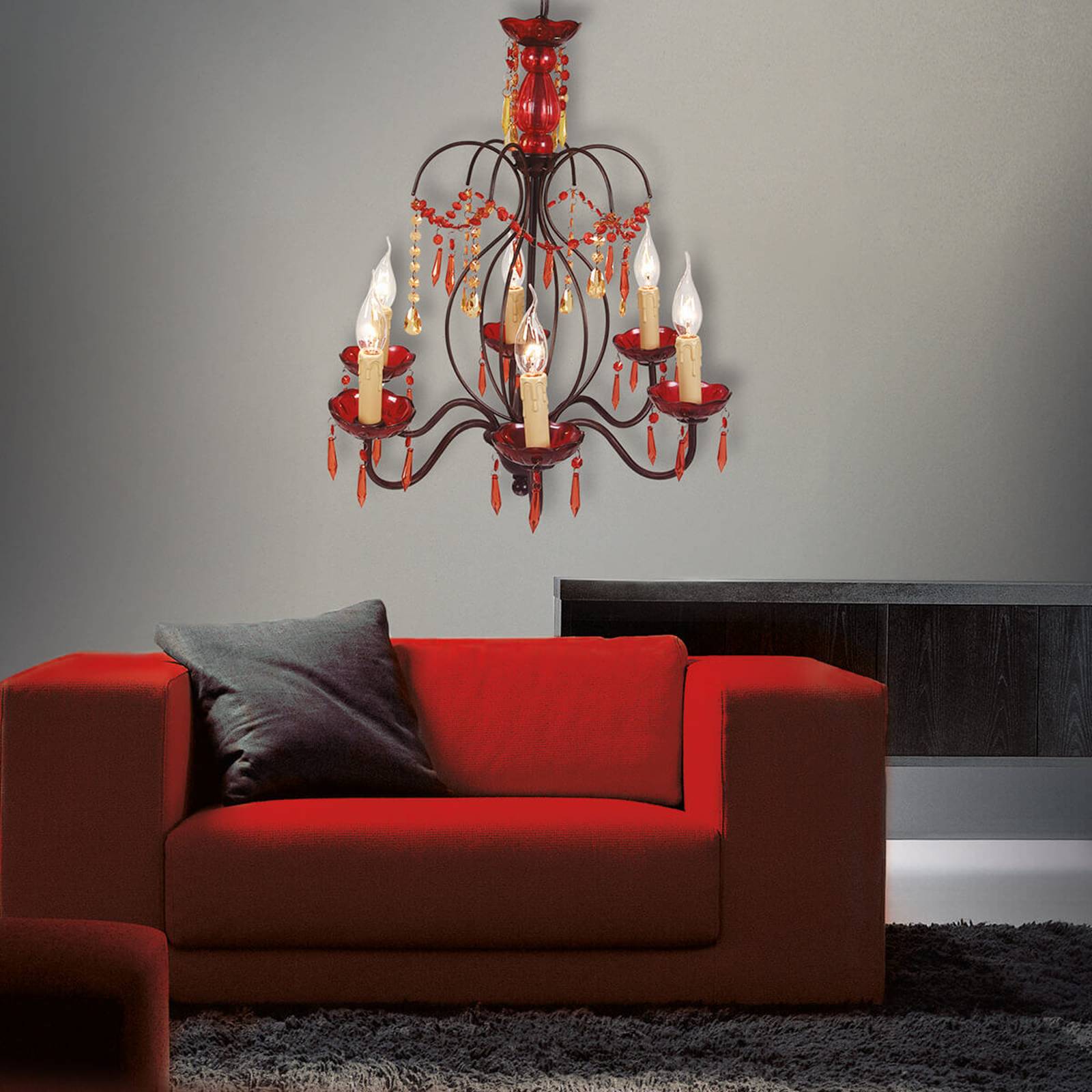 Näve Červený lustr Dorota z akrylu, Obývací pokoj / jídelna, akryl, sklo, E14, 40W, K: 60cm