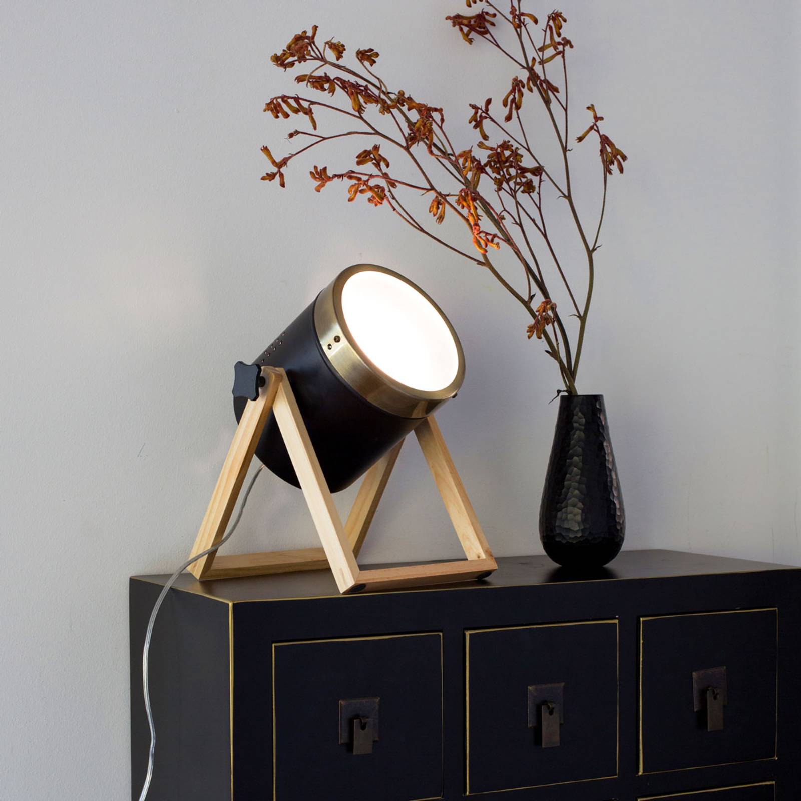 Näve Stolní lampa Tim černo-zlatá, Obývací pokoj / jídelna, keramika, PVC, dřevo, E27, 60W, K: 28cm