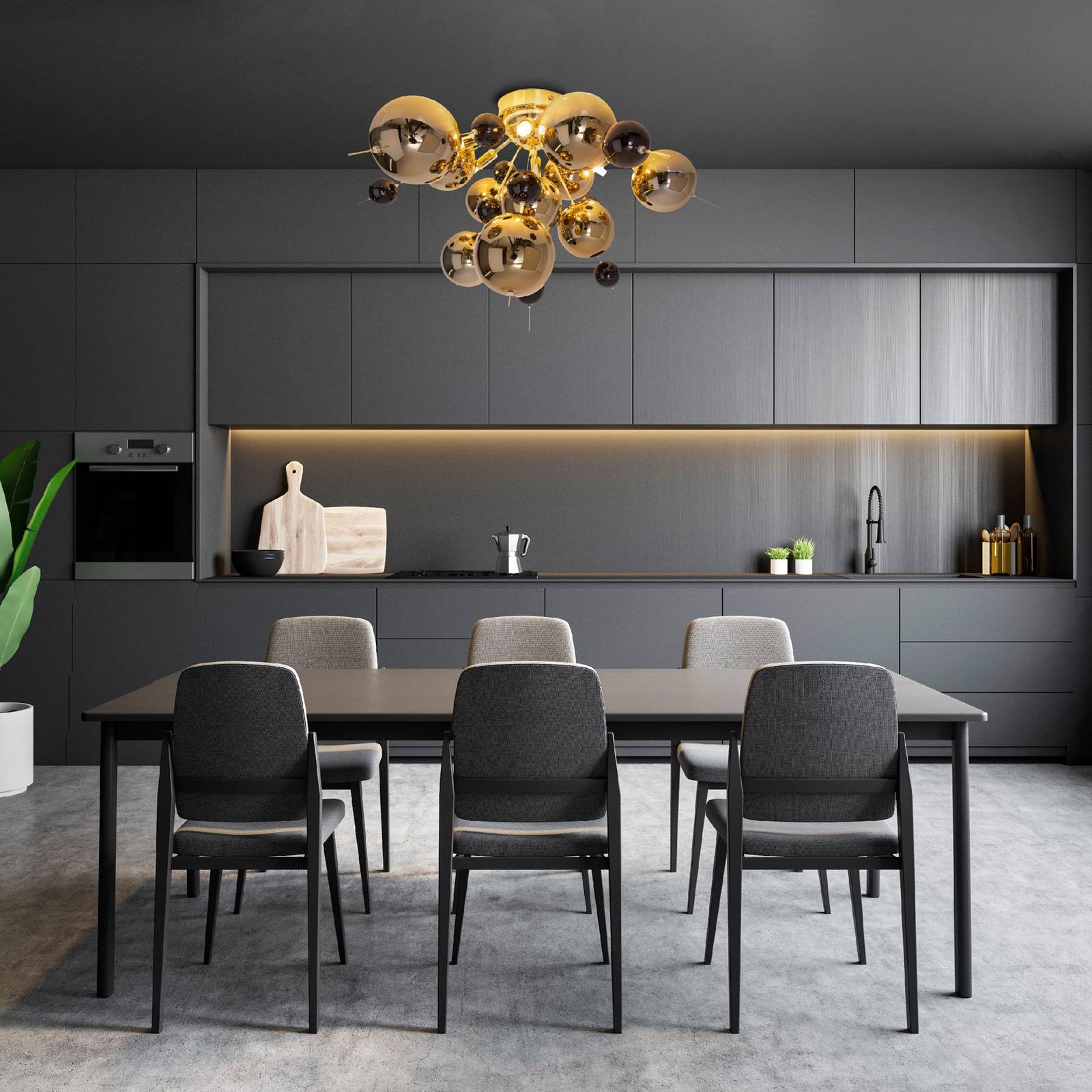 Näve Závěsné světlo Explosion se zlatými koulemi, Obývací pokoj / jídelna, sklo, ocel, G9, 28W