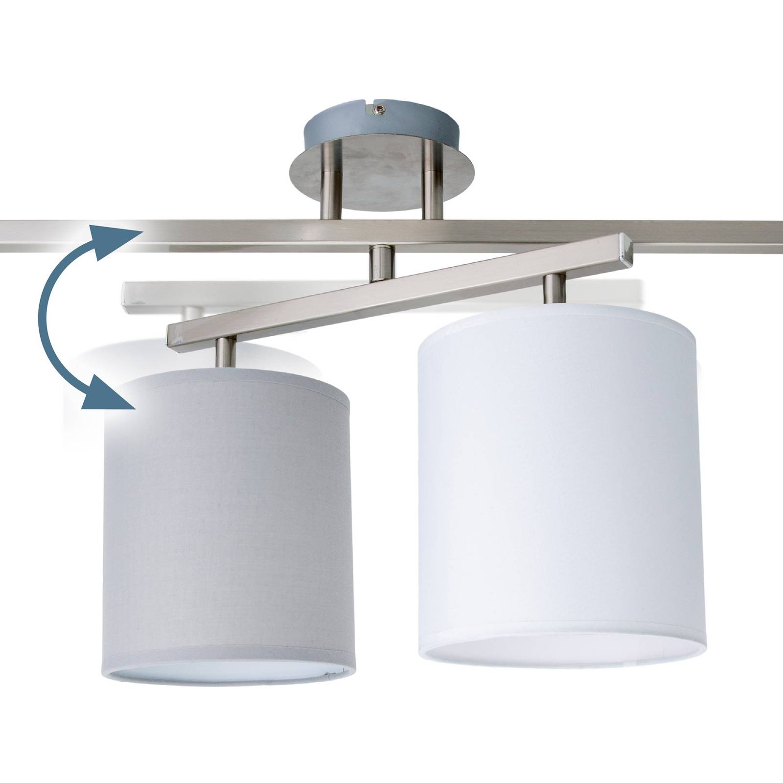 Näve Stropní světlo Tilde 4 textilní stínidla šedá/bílá, Obývací pokoj / jídelna, ocel, polyester, bavlna, E27, 40W, P: 82 cm, L: 29 cm