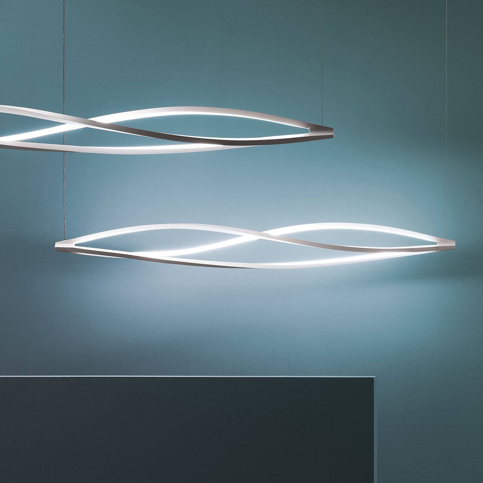 NEMO Závěsná lampa Nemo In The Wind horiz. 2 700K bílá, Obývací pokoj / jídelna, Hliník, plast, 58W, P: 183 cm, K: 19cm