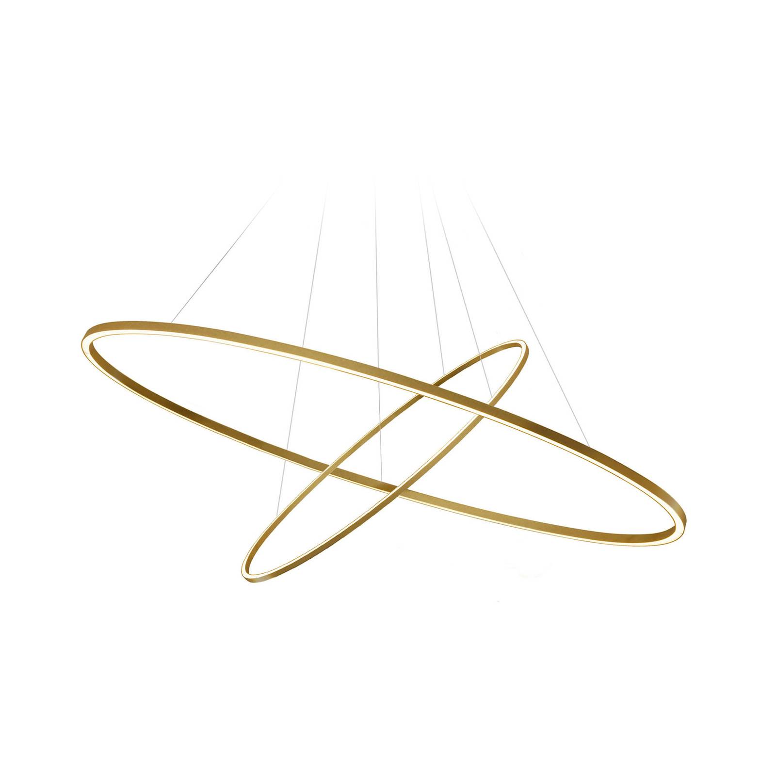 NEMO Závěsné světlo Nemo Ellisse Double Mega 2 700K zlaté, Obývací pokoj / jídelna, Hliník, metakrylát, 90W, P: 186 cm, L: 95 cm