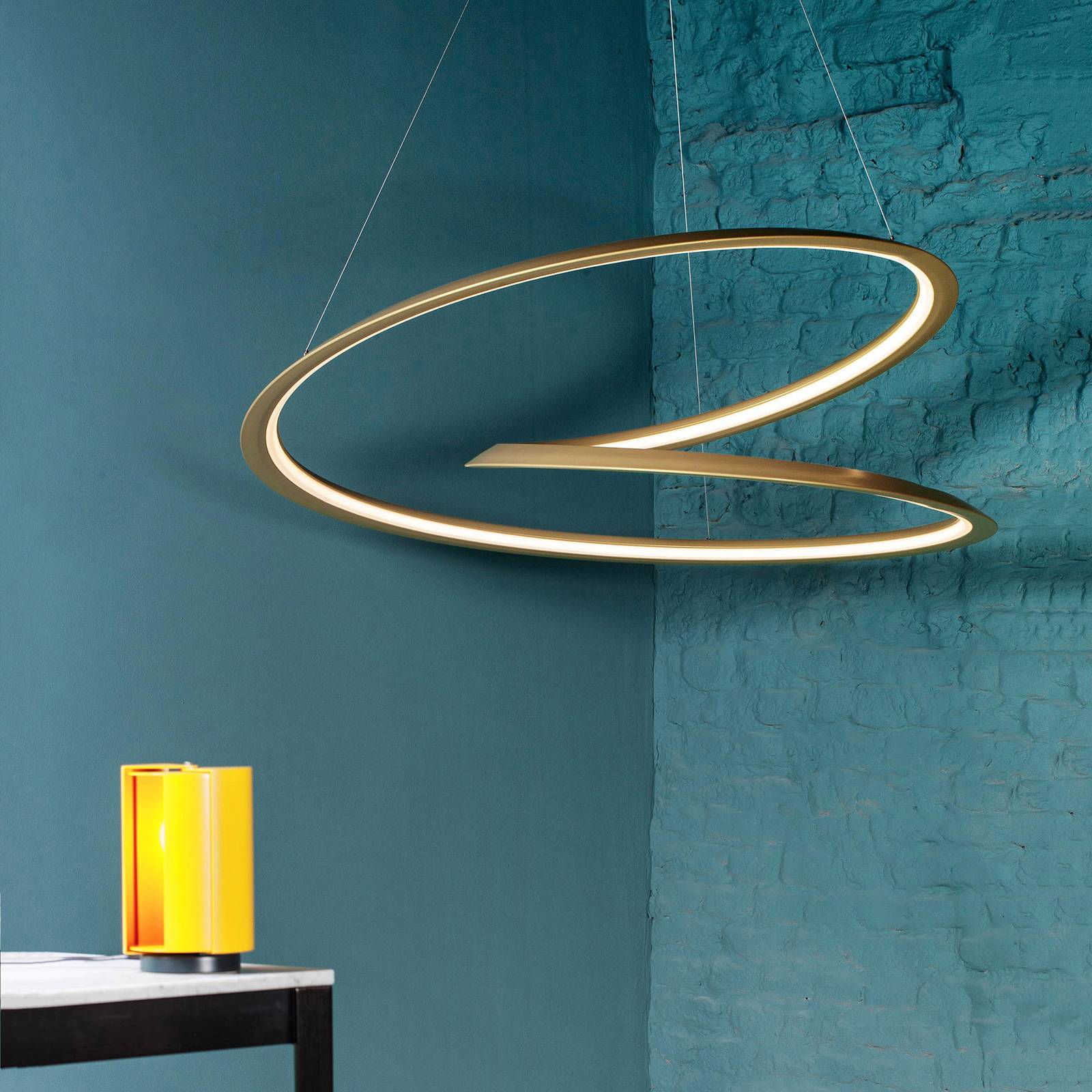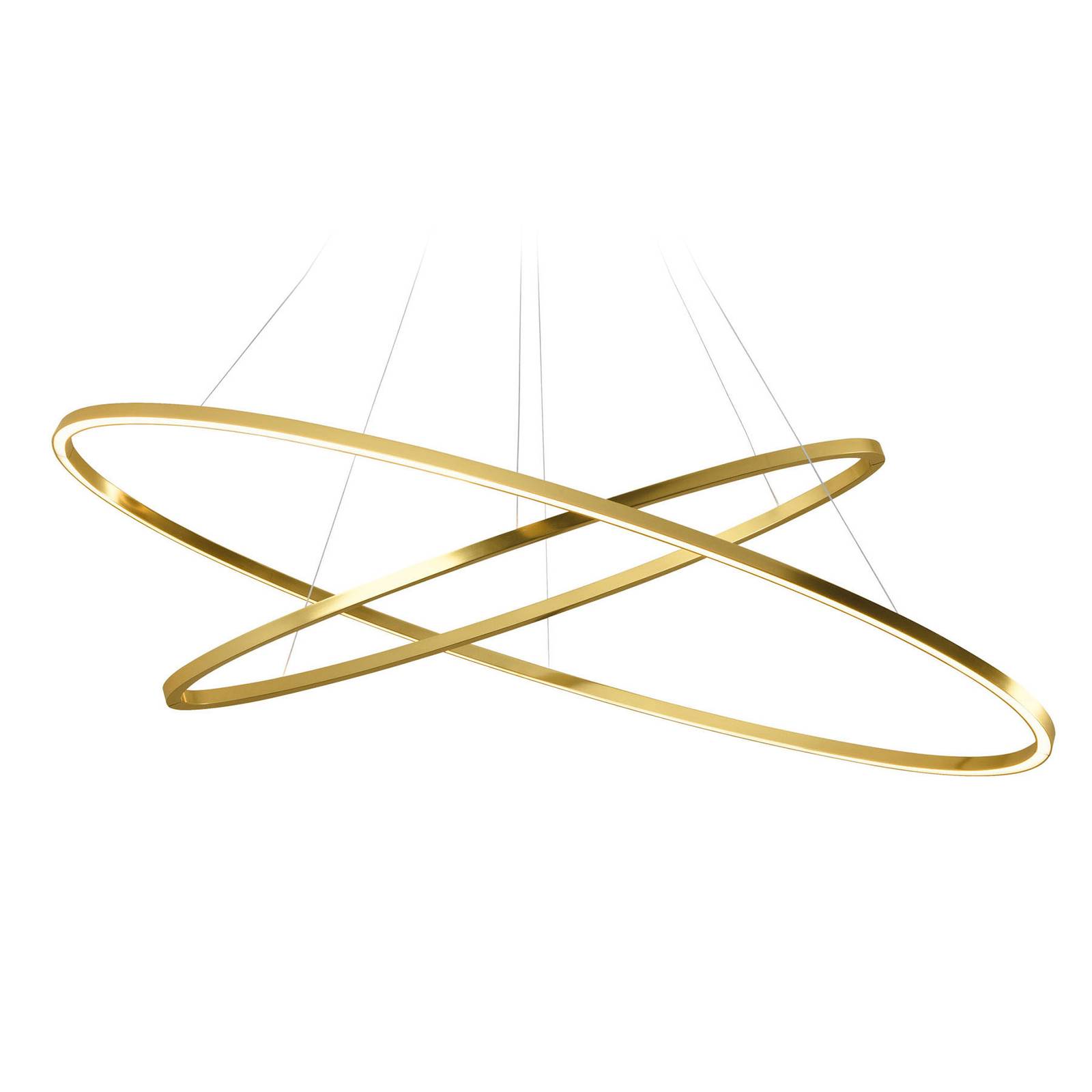NEMO Nemo Ellisse Dvojitá závěsná lampa 2700K zlatá leštěná, Obývací pokoj / jídelna, Hliník, metakrylát, 90W, P: 135 cm, L: 70 cm