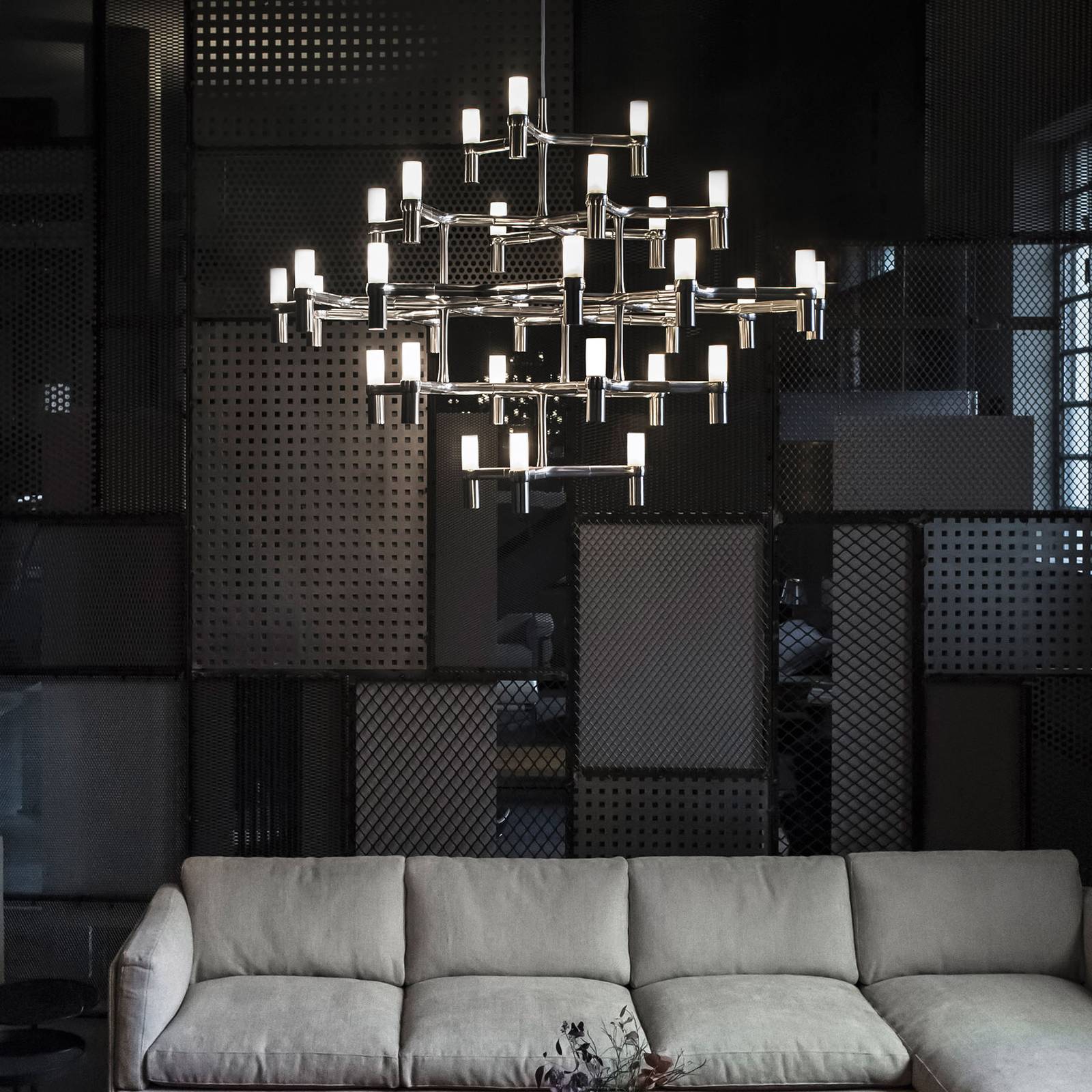 NEMO Závěsné svítidlo Nemo Crown Major 30 světelných bodů z hliníku, Obývací pokoj / jídelna, Hliník, sklo, G9, 25W, P: 113 cm, L: 109 cm, K: 87cm