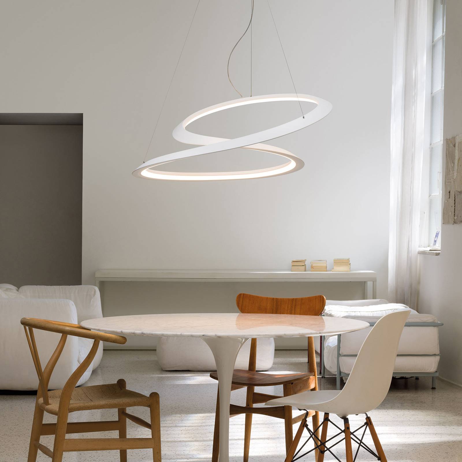 NEMO Závěsné svítidlo Nemo Kepler 2 700K Dolů Ø84cm bílá, Obývací pokoj / jídelna, Hliník, plast, 77W, K: 35cm