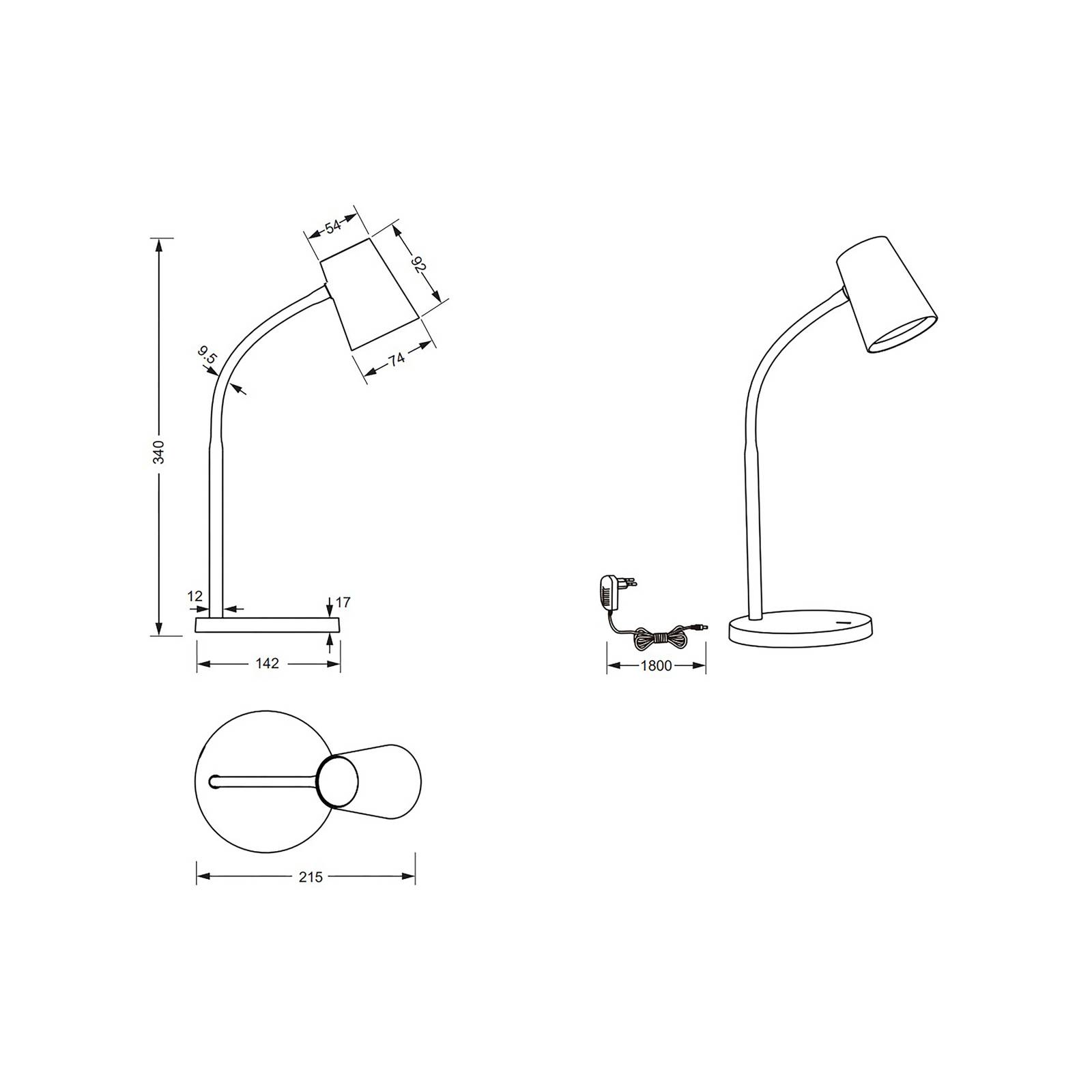 NOWA GmbH LED stolní lampa na baterii Adam, šedá, Obývací pokoj / jídelna, kov, plast, 0.9W, P: 24.5 cm, L: 9 cm, K: 13cm