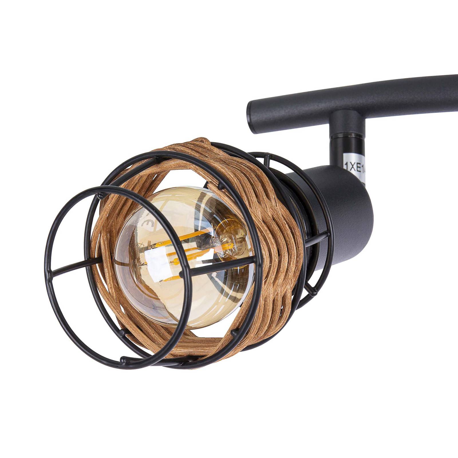 NOWA GmbH Stropní bodovka Malik, černá/ratan, 2 zdroje, Obývací pokoj / jídelna, kov, ratan, E14, 25W, P: 25.3 cm, K: 17cm