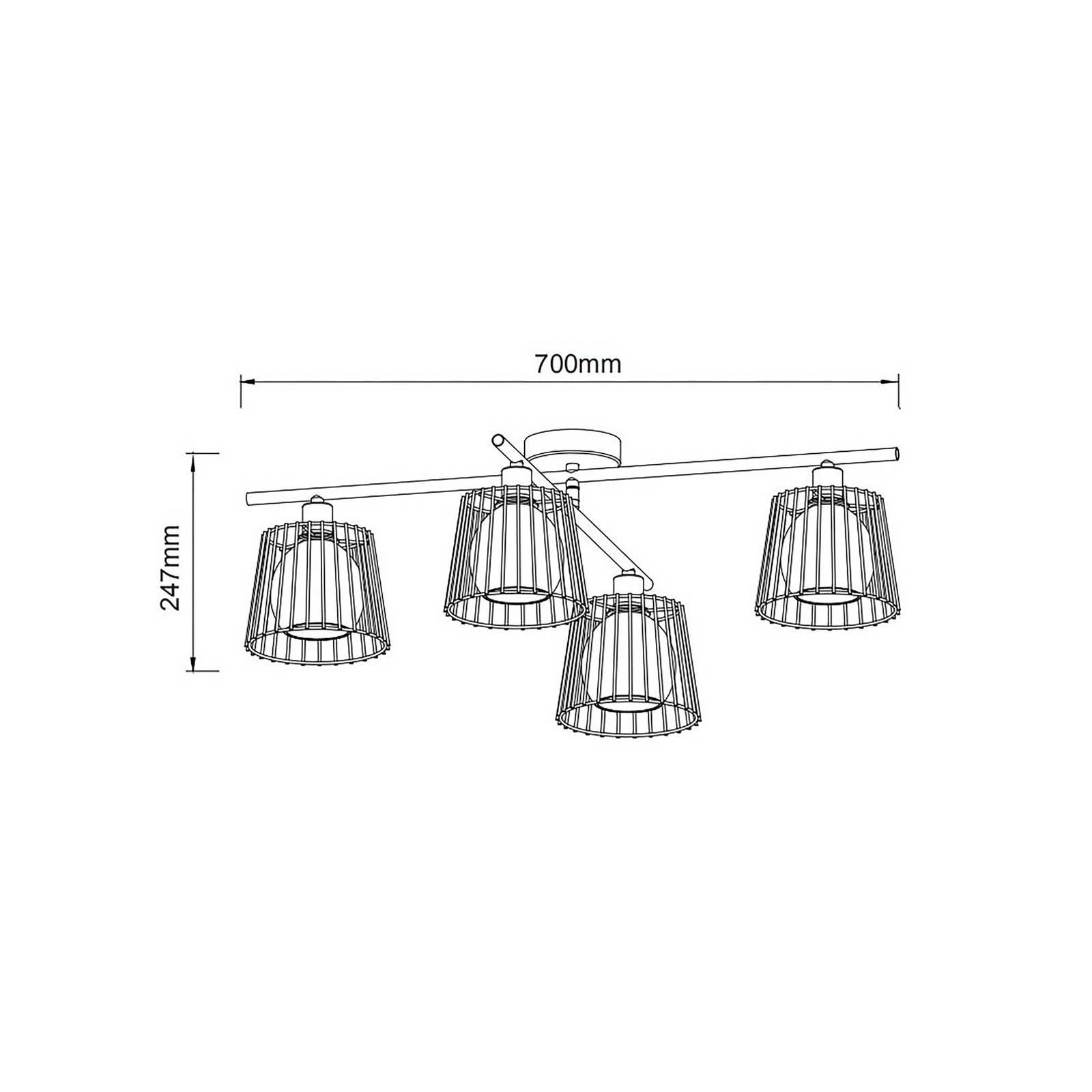 NOWA GmbH Stropní světlo Priso klecová stínidla, 4 zdroje, Obývací pokoj / jídelna, kov, sklo, E14, 40W, P: 70 cm, L: 50 cm, K: 24.7cm