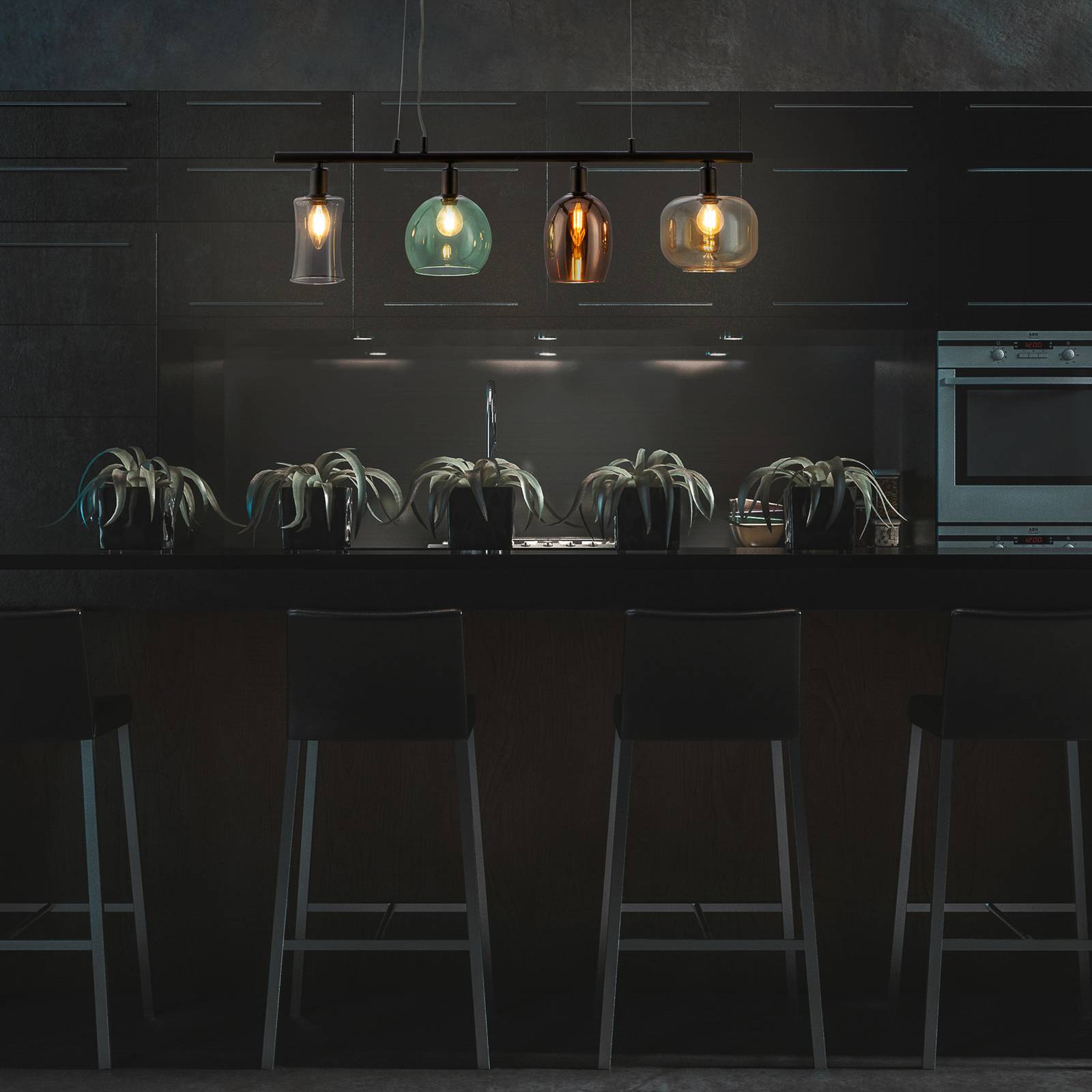 NOWA GmbH Závěsné světlo Telesto stínidla ze skla, 4 zdroje, Obývací pokoj / jídelna, kov, sklo, E14, 40W, P: 80 cm, L: 16 cm