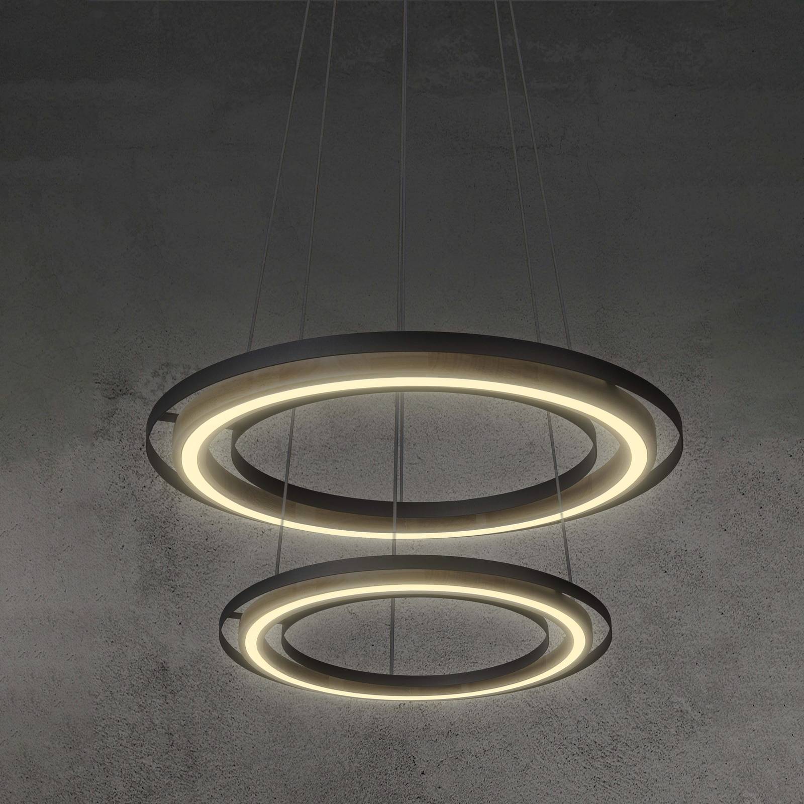 NOWA GmbH LED závěsné světlo Rilas kruhová stínidla 2 zdroje, Obývací pokoj / jídelna, bambusové dřevo, kov, 21W, K: 37.3cm