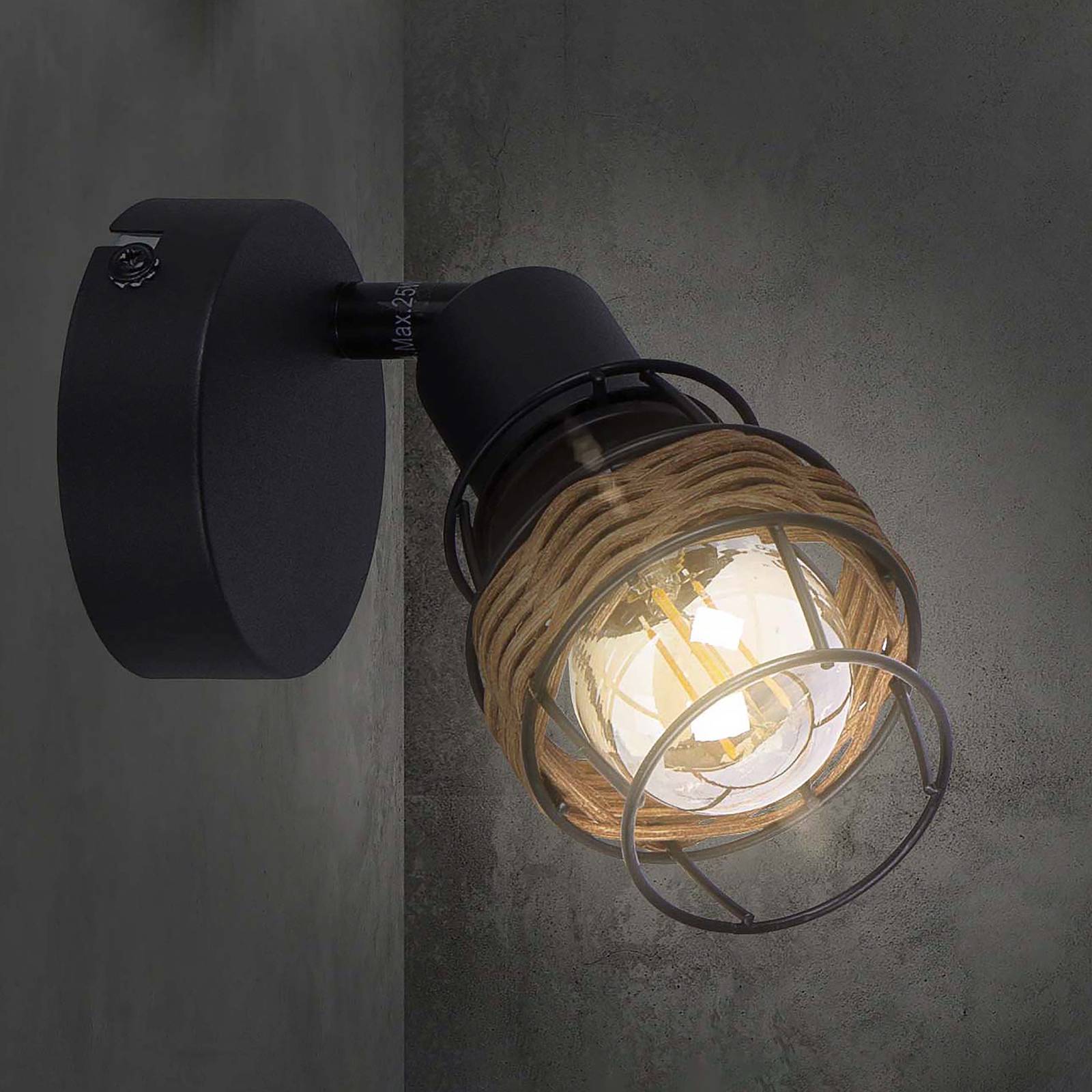 NOWA GmbH Nástěnná bodovka Malik, černá/ratan, 1 zdroj, Obývací pokoj / jídelna, kov, ratan, E14, 25W, L: 13 cm