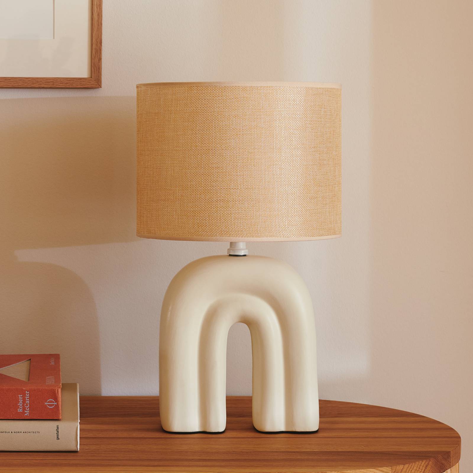 Nordlux Stolní lampa Haze, keramika, textilní stínidlo, béžová barva, Obývací pokoj / jídelna, Keramika, textil, E27, 40W, K: 42cm