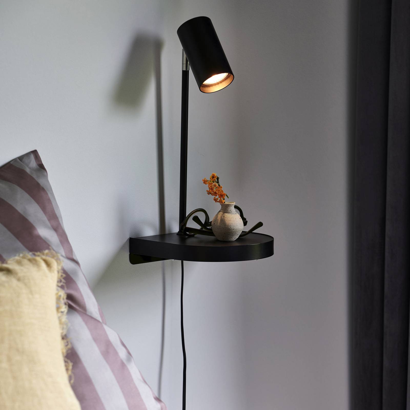 Nordlux Nástěnné světlo Cody, s policí a USB portem, černá, Ložnice, kov, GU10, 15W, L: 20 cm, K: 42.9cm