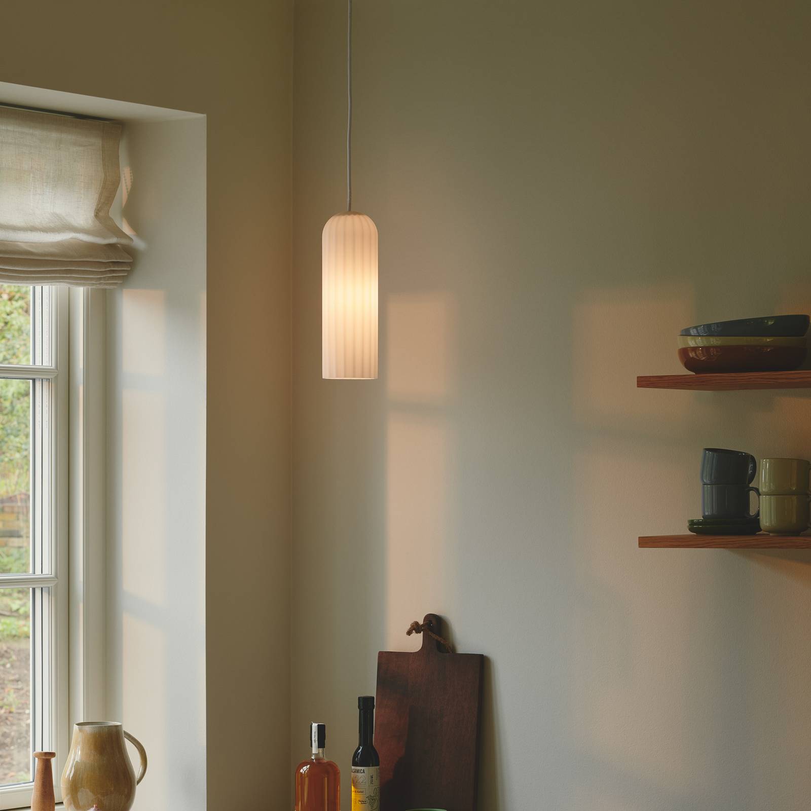Nordlux Závěsné svítidlo Miella, žebrované sklo, satinované/bílé, Obývací pokoj / jídelna, Sklo, plast, E27, 25W, K: 30cm