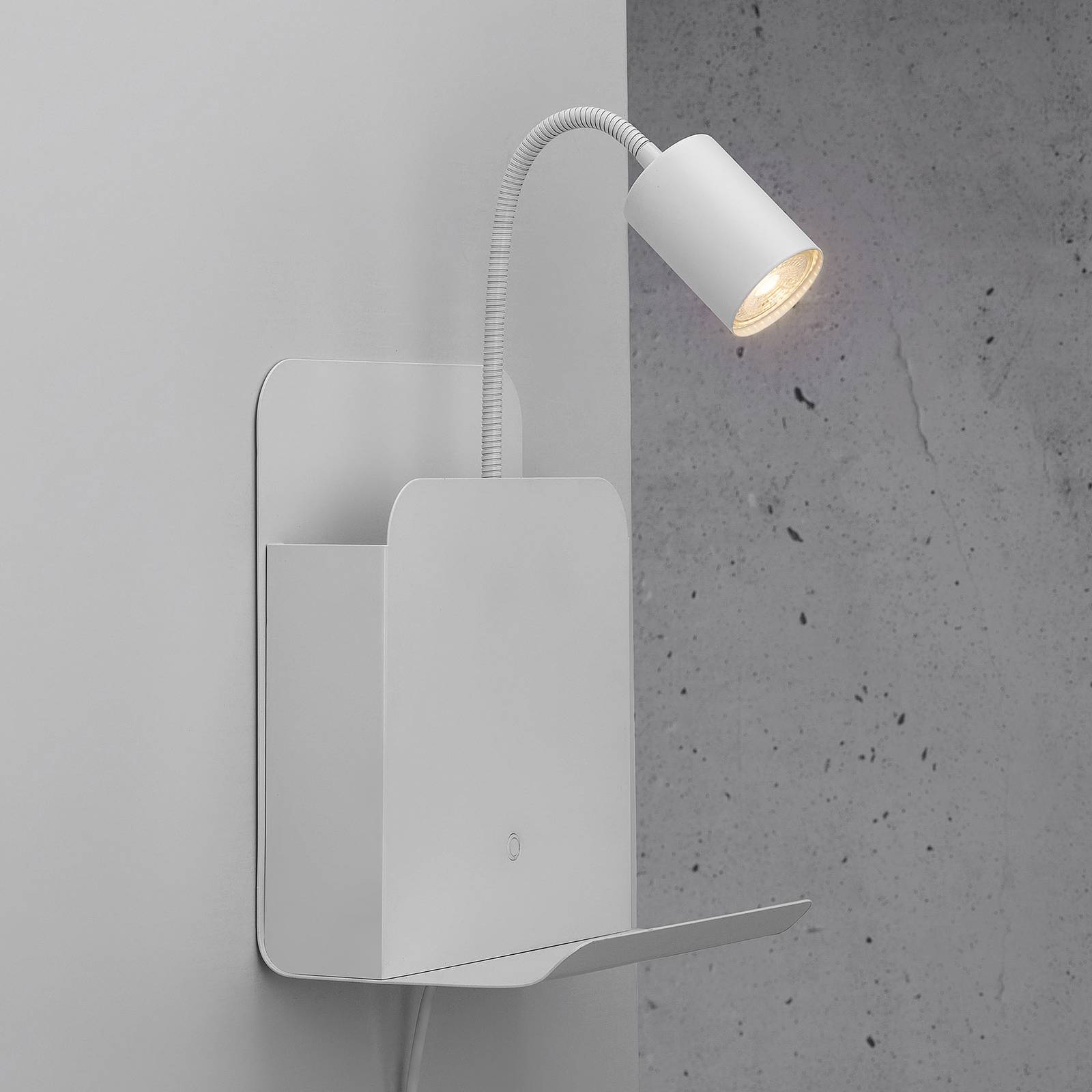 Nordlux Nástěnné světlo Roomi s policí a USB, bílá, Ložnice, kov, GU10, 35W, L: 24.8 cm, K: 28.2cm