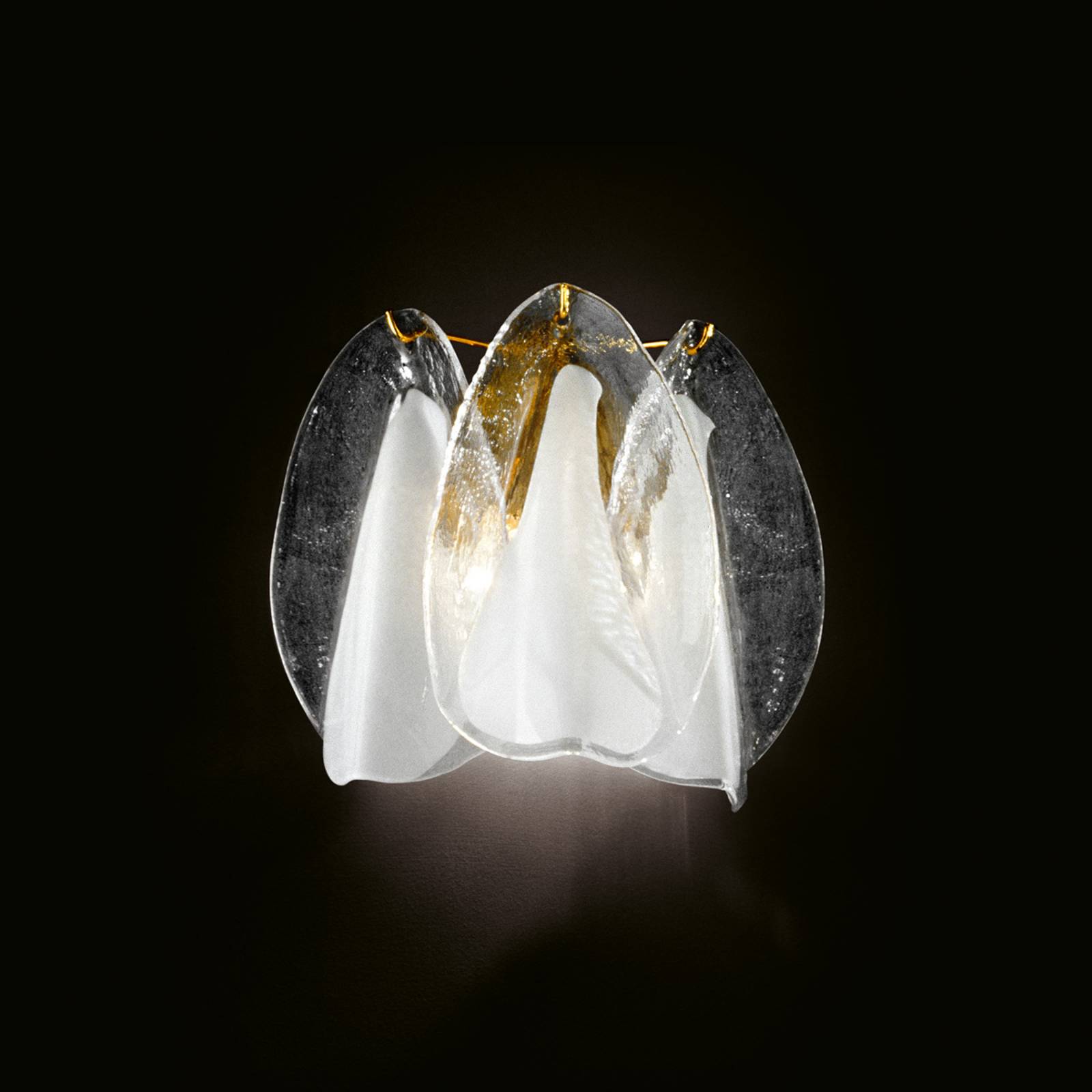 Novaresi Nástěnné světlo Tulipani se sklem Murano, Obývací pokoj / jídelna, sklo Murano, kov, E14, 40W, L: 25 cm, K: 30cm