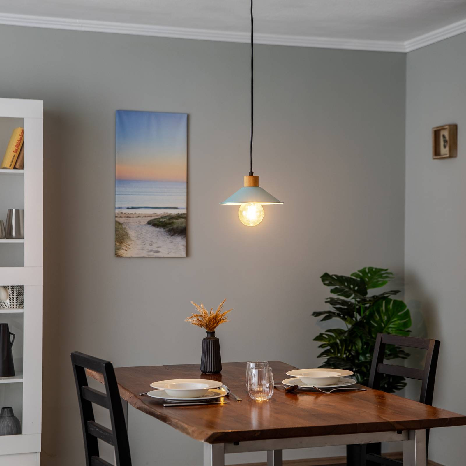 Opviq Závěsné GMN-00005 1 zdroj dřevěný detail modrá, Obývací pokoj / jídelna, kov, dřevo, E27, 40W, K: 7cm