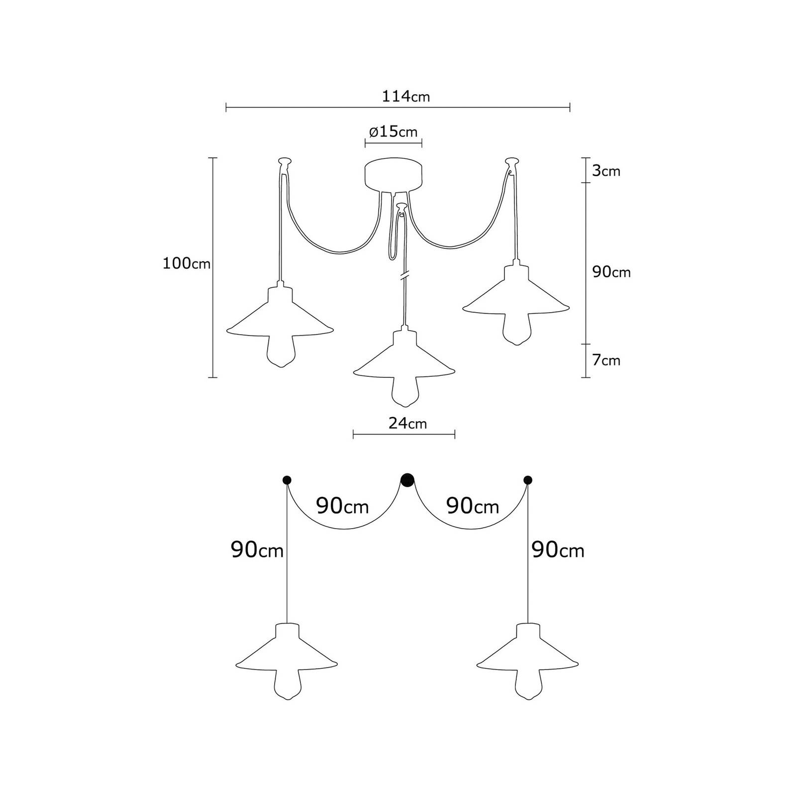 Opviq Závěsné Manavgat N-554 3 zdroje zlatá/černá/měď, Obývací pokoj / jídelna, kov, dřevo, E27, 40W, K: 7cm