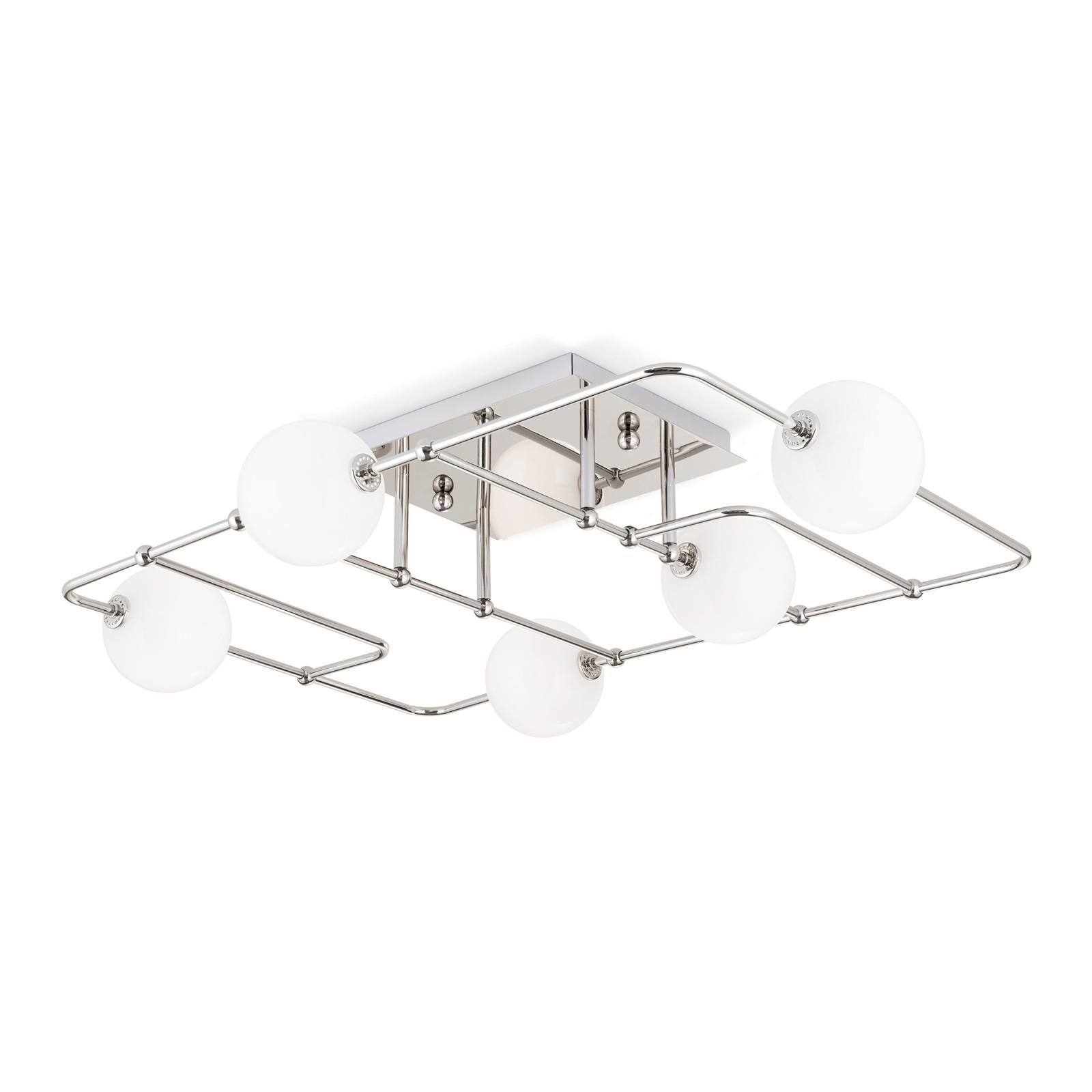 Orion LED stropní světlo Pipes 5 skleněných koulí, nikl, Obývací pokoj / jídelna, mosaz, sklo, G9, 25W, P: 84 cm, L: 62 cm, K: 19cm