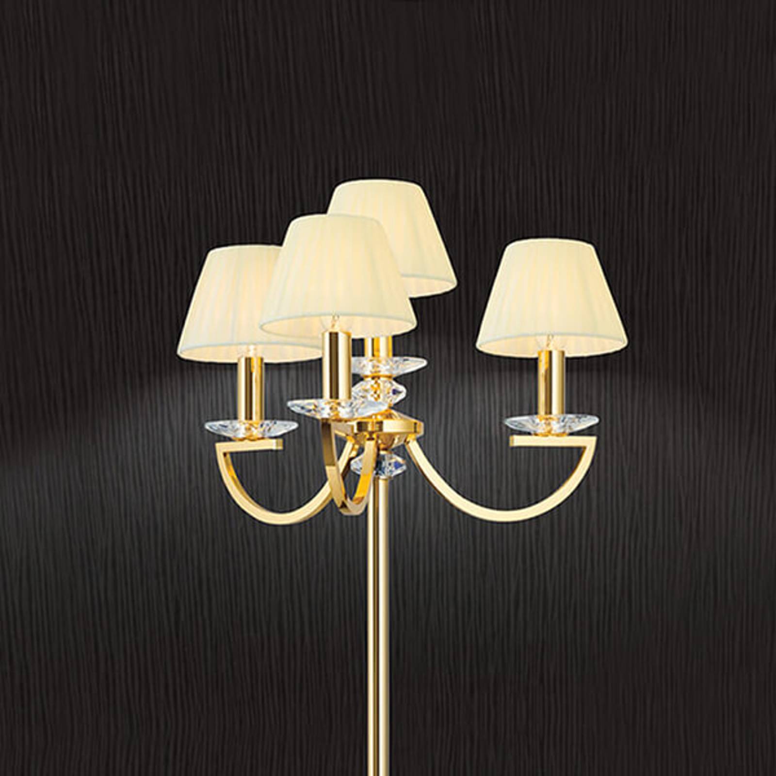 Orion Křišťál. Stojací lampa Avala – pozlacená 24 karátů, Obývací pokoj / jídelna, mosaz, organza, křišťál Strass, E14, 40W, K: 158cm