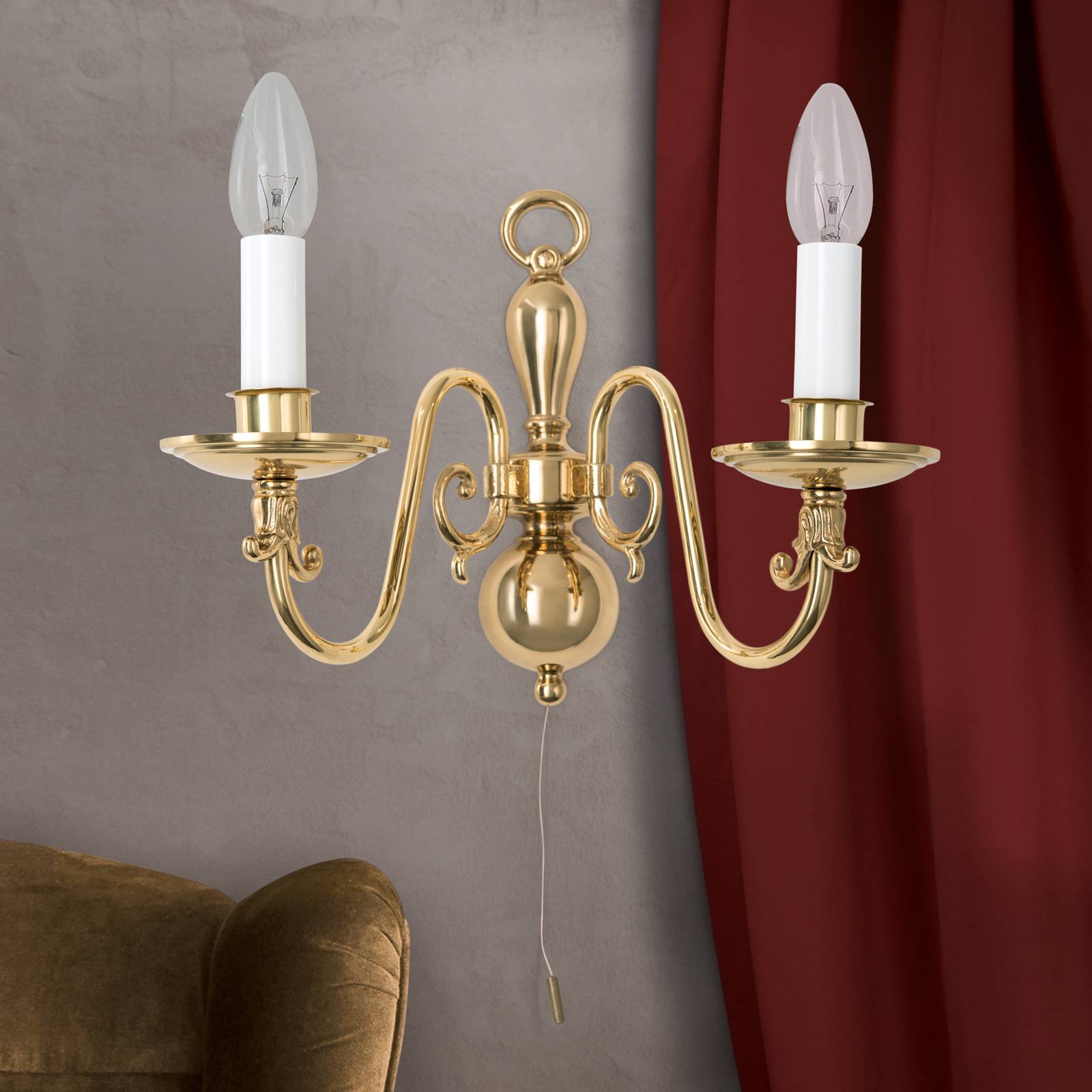Orion Mosazné nástěnné svítidlo Imke, dvě žárovky, Obývací pokoj / jídelna, plná mosaz, E14, 40W, L: 35 cm, K: 22cm