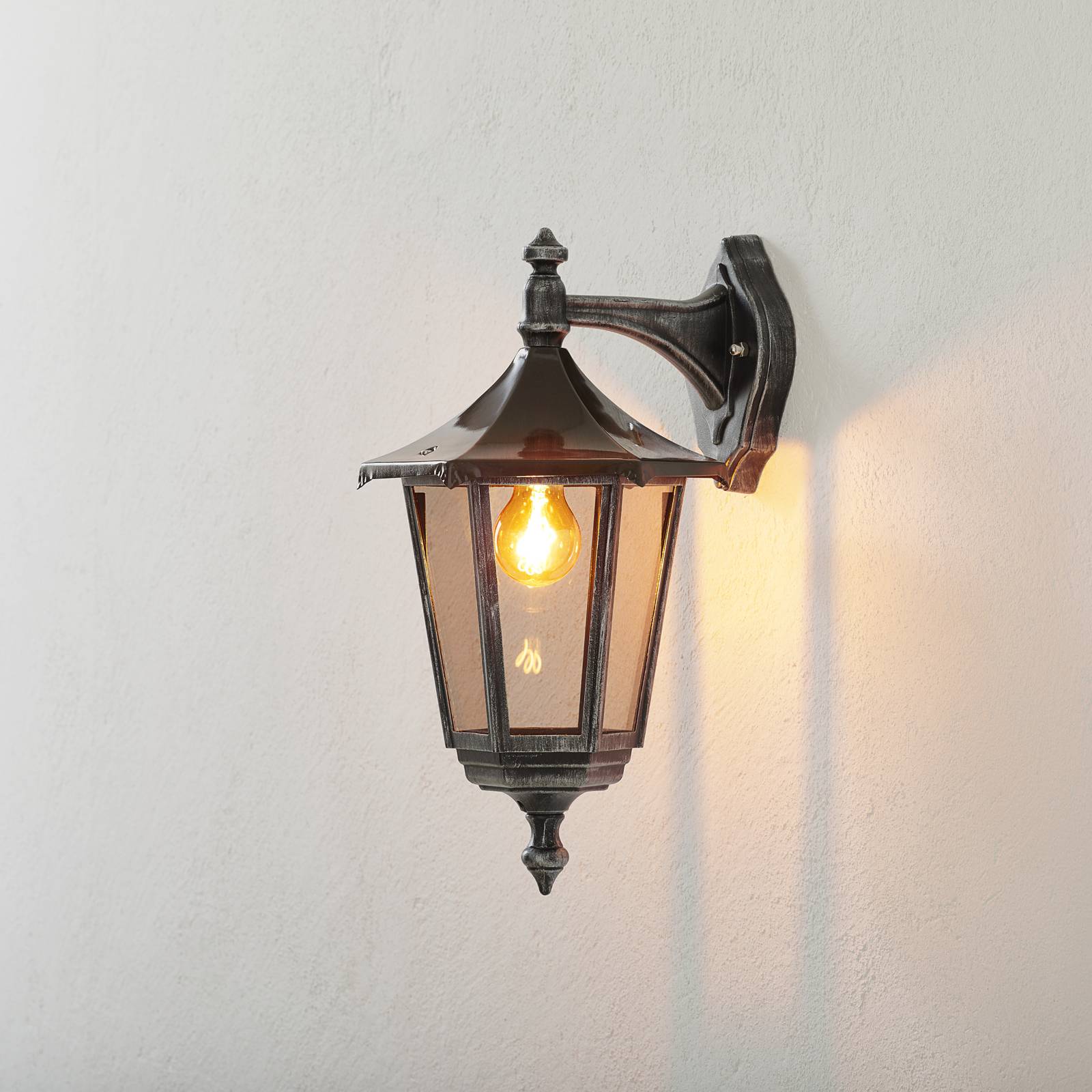 Orion Venkovní nástěnné světlo Antoine, lucerna dolů, hliník, měď, sklo, E27, 100W, L: 25.5 cm, K: 45cm