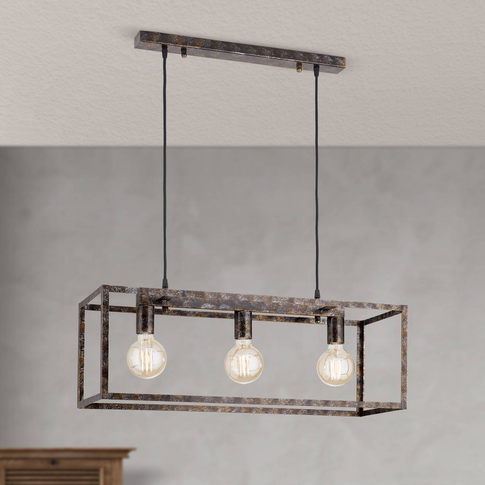 Orion Závěsné světlo v rezavém pohledu, tři zdroje, Obývací pokoj / jídelna, ocel, E27, 60W, P: 75 cm, L: 25 cm, K: 25cm