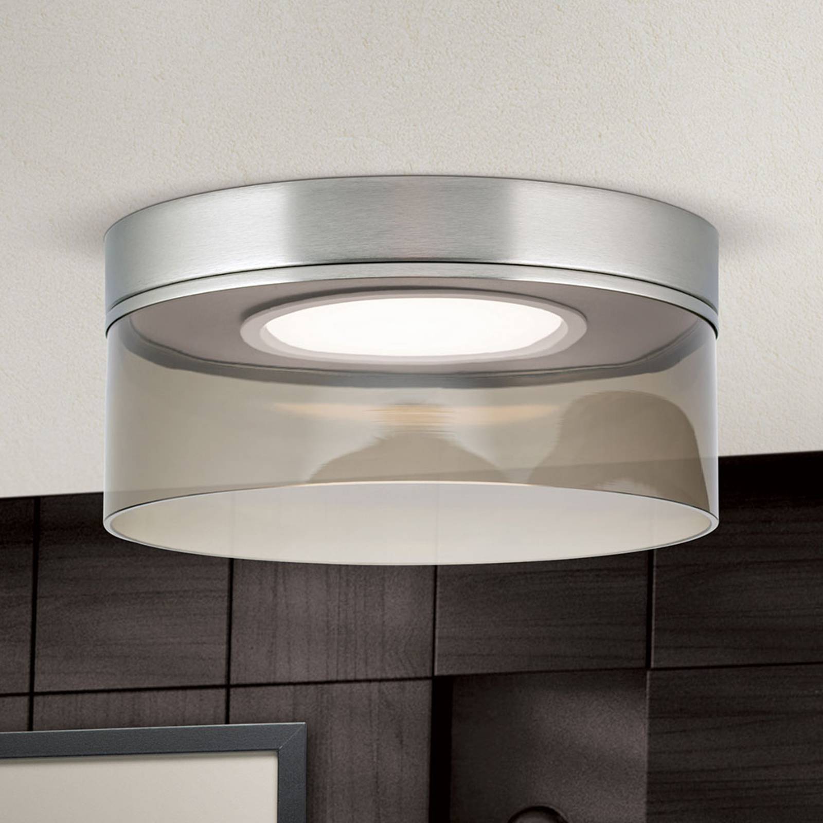 Orion LED stropní svítidlo Francis nikl matný Ø 30 cm, Obývací pokoj / jídelna, železo, sklo, 24W, K: 14cm