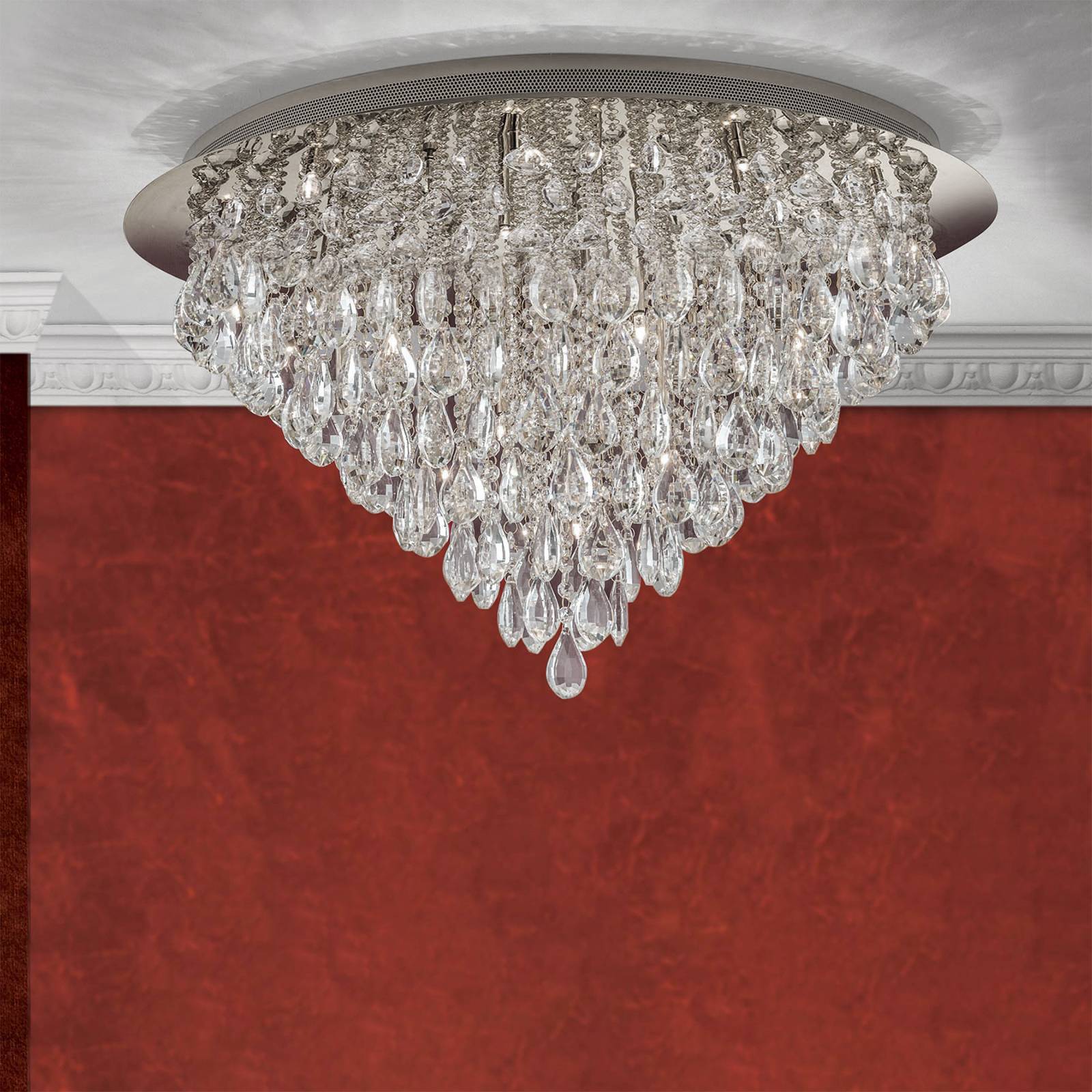 Orion Stropní svítidlo Celeste s krystaly K9, Ø75cm chrom, Obývací pokoj / jídelna, Kov, křišťálové sklo K9, G9, 40W, K: 44.5cm