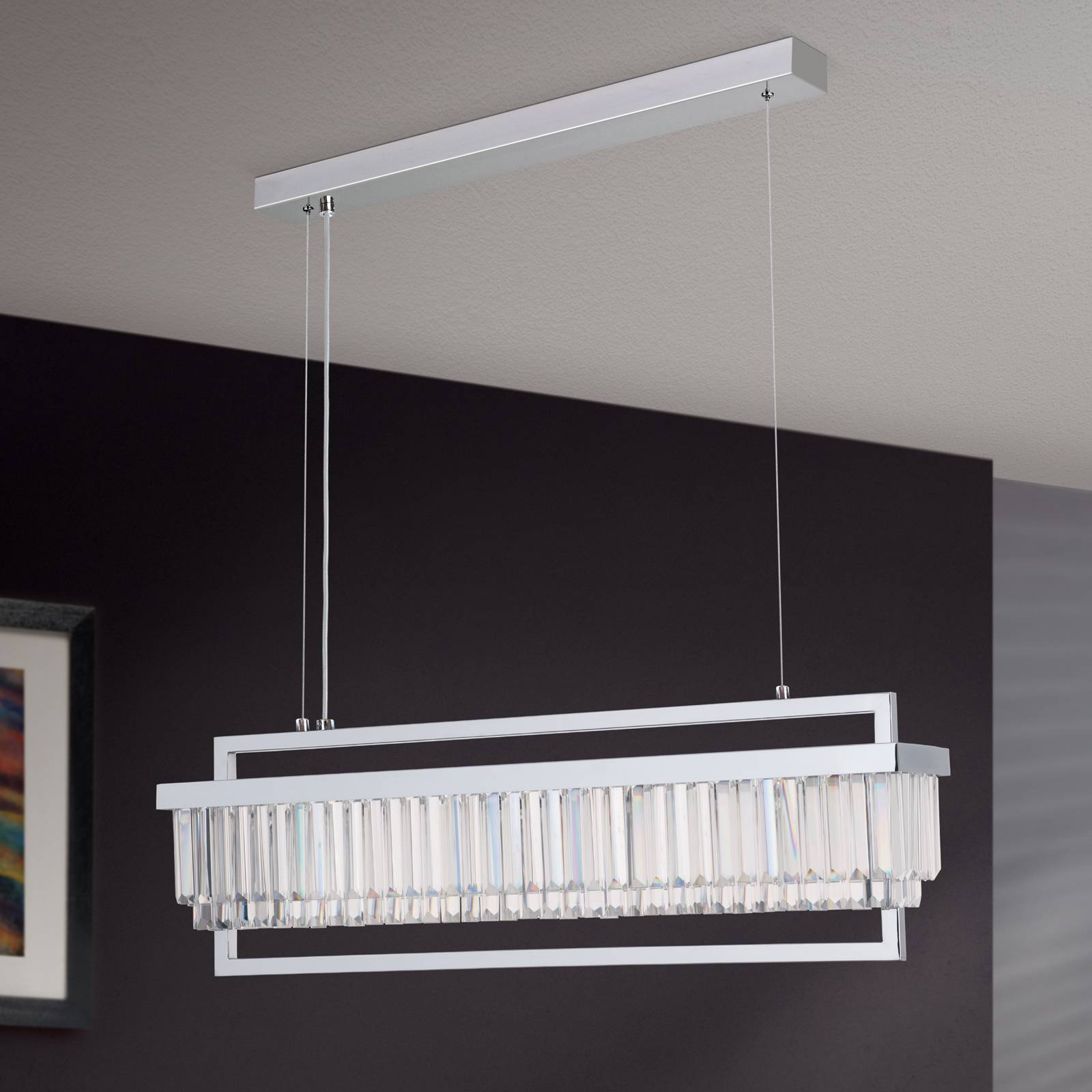 Orion LED závěsné světlo Prism, podlouhlé chrom, Obývací pokoj / jídelna, křišťálové skleněné hranolky, kov, 80W, P: 90 cm, L: 17 cm, K: 28cm