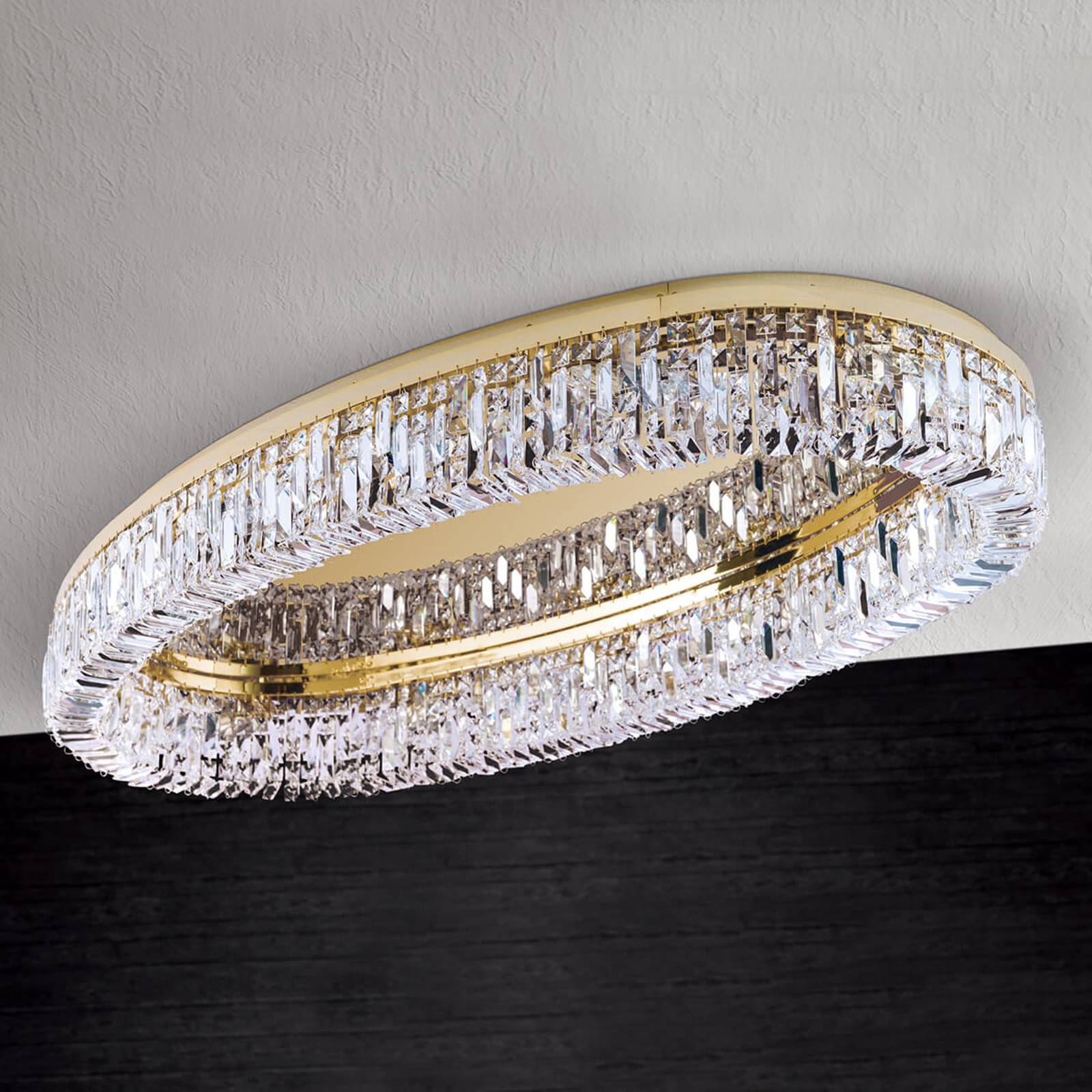 Orion Oválné prémiové stropní světlo Ring s krystaly, Obývací pokoj / jídelna, mosaz, křišťál Schöler, E14, 40W, P: 115 cm, L: 63 cm, K: 14cm