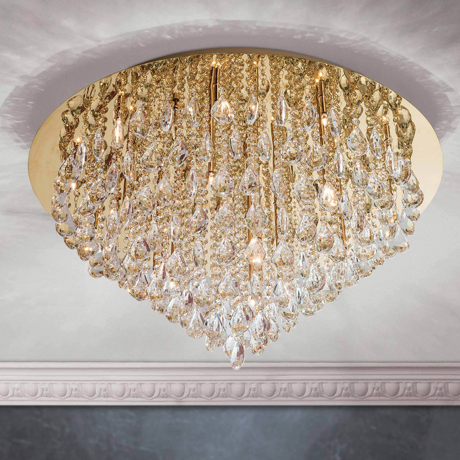 Orion Stropní svítidlo Celeste s krystaly K9, Ø75 cm, zlatá barva, Obývací pokoj / jídelna, Kov, křišťálové sklo K9, G9, 40W, K: 44.5cm