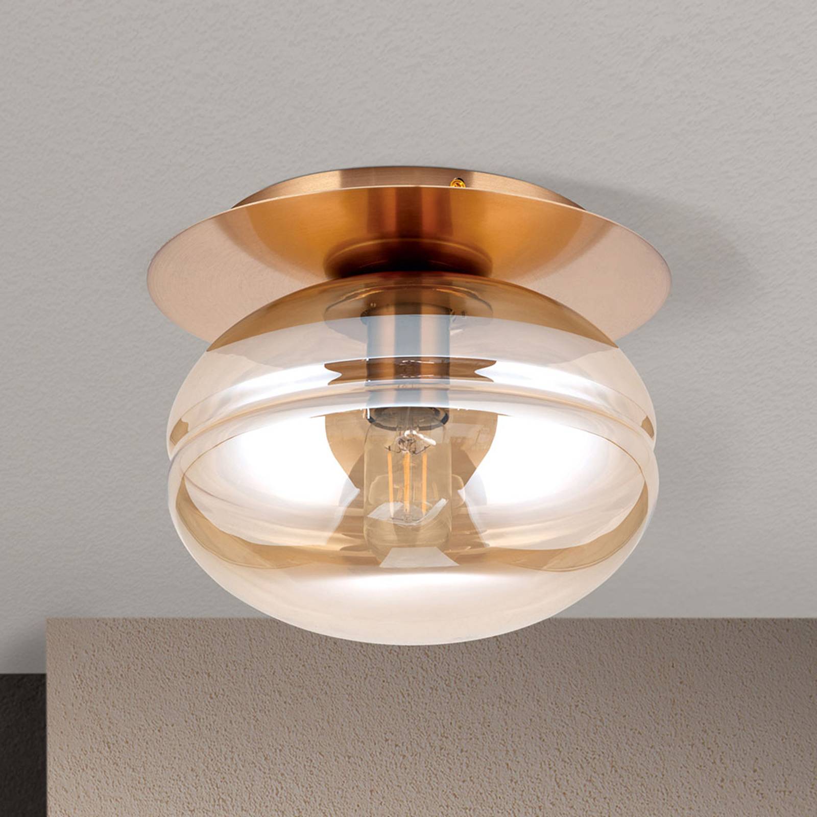 Orion Stropní světlo Richard, kov mosaz, sklo jantar, Obývací pokoj / jídelna, kov, sklo, E27, 8W, K: 21cm