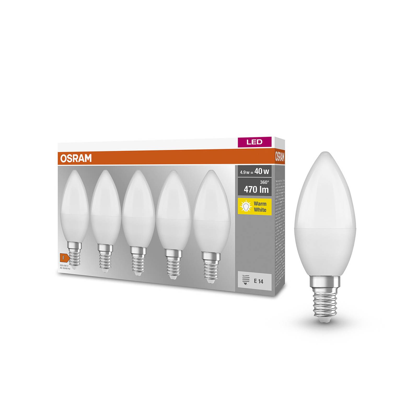 OSRAM Base Classic B LED svíčka E14 4, 9W 5ks, plast, E14, 4.9W, Energetická třída: F, P: 10 cm