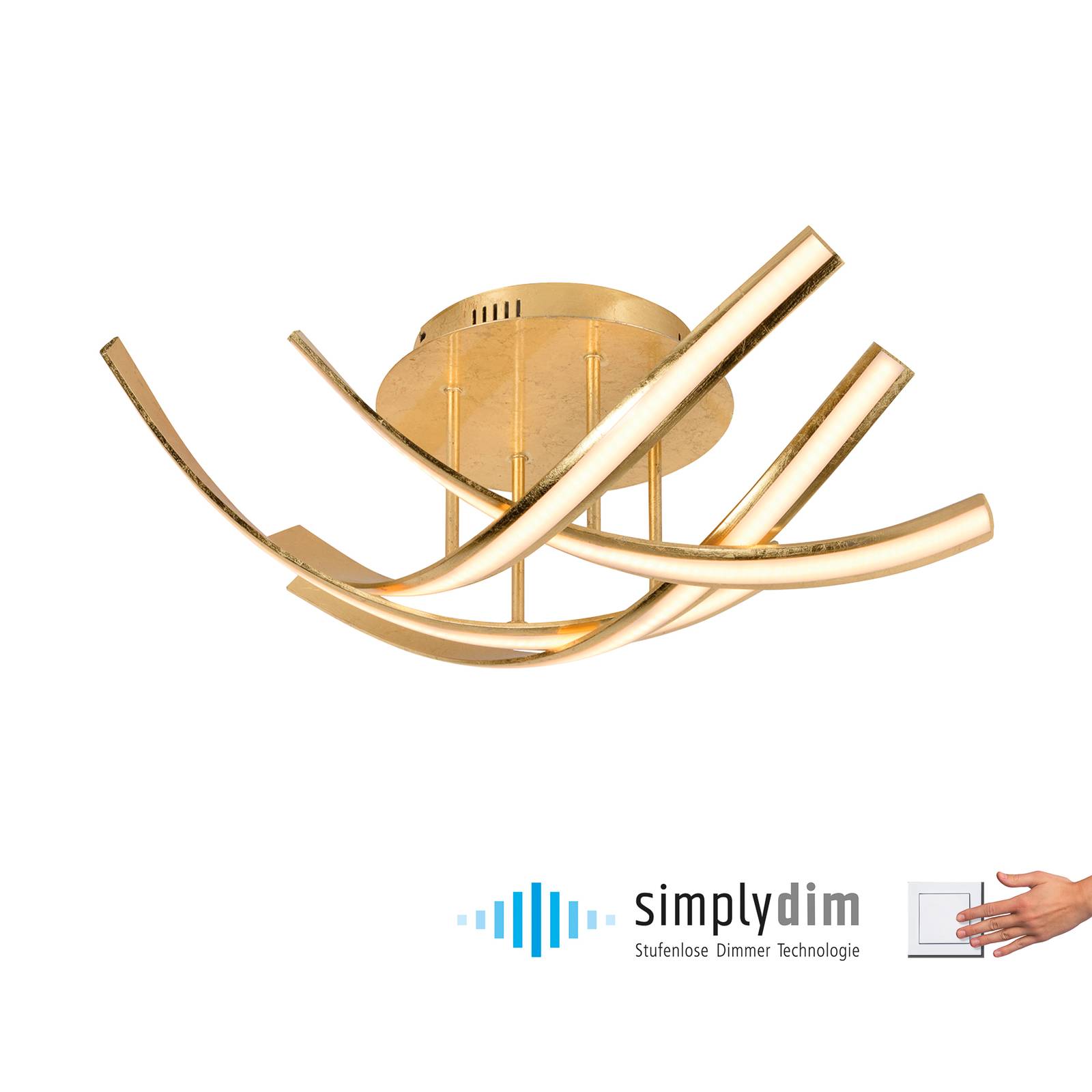 Paul Neuhaus Linda LED stropní svítidlo zlatá, Obývací pokoj / jídelna, železo, plast, 7W, P: 73 cm, L: 73 cm, K: 20cm