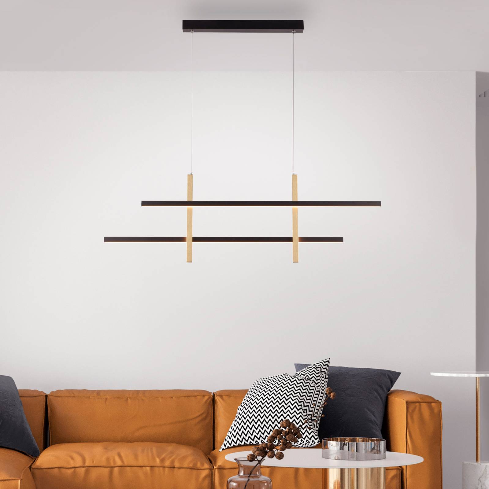 Paul Neuhaus LED závěsné světlo Barra, čtyři zdroje, simply dim, Obývací pokoj / jídelna, železo pochromované, hliník kartáčovaný, PVC, 38W, P: 109.5 cm, L: 6 cm