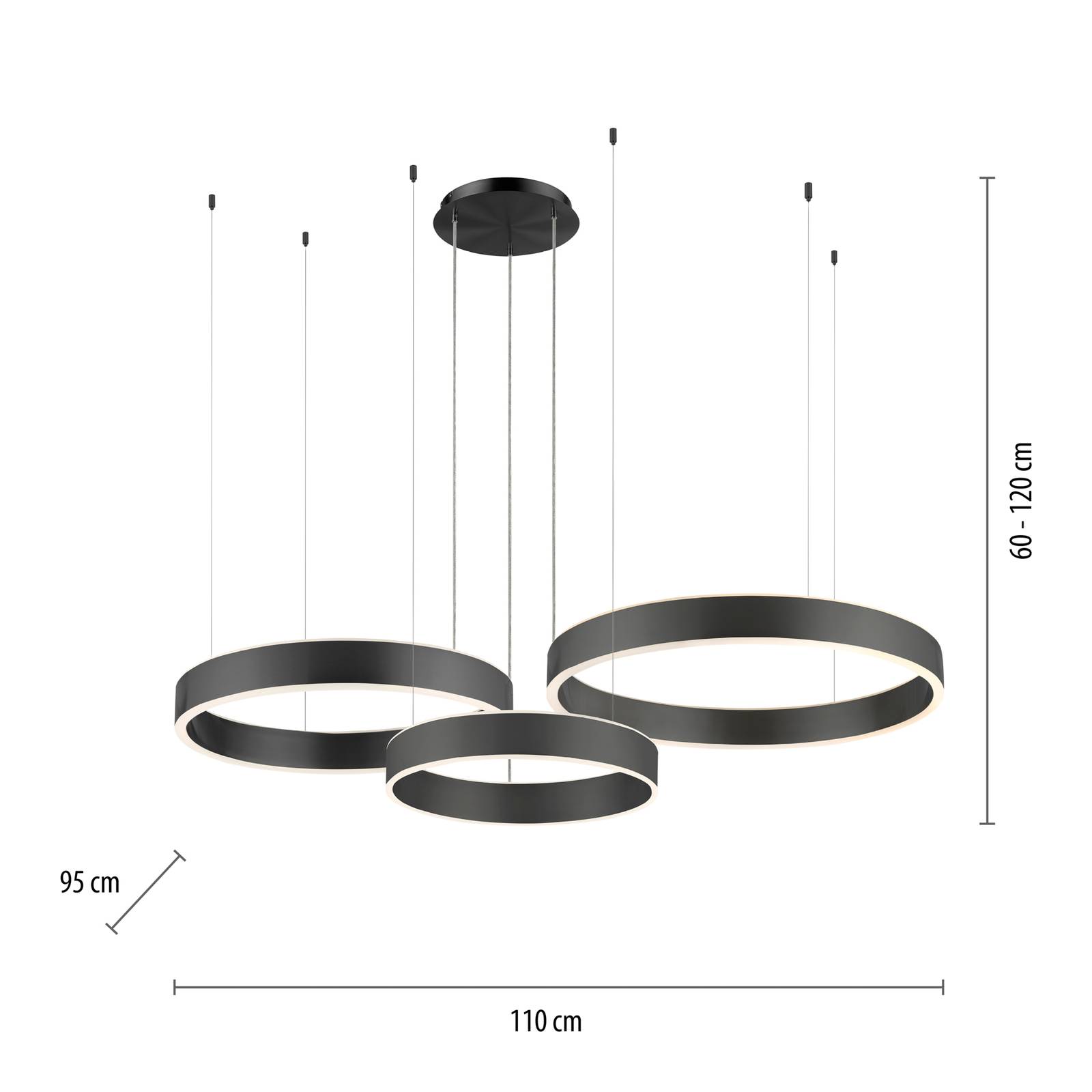 Paul Neuhaus Závěsné svítidlo Sculli LED, černé, Obývací pokoj / jídelna, hliník, železo, silikon, 28W, P: 110 cm, L: 95 cm