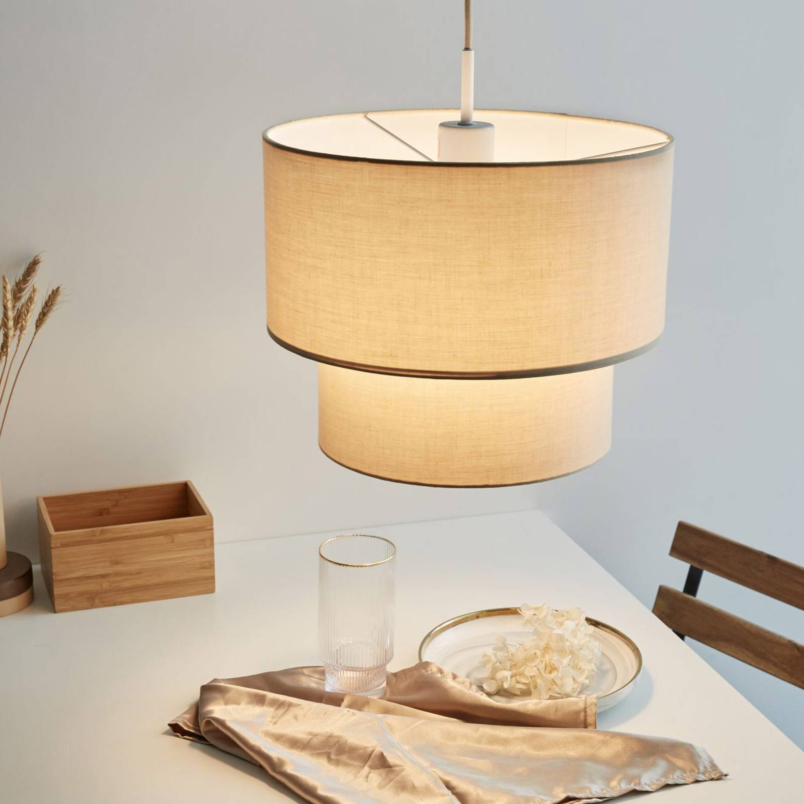 Pauleen Soft Shine závěsné světlo z béžové látky, Obývací pokoj / jídelna, látka, E27, 20W