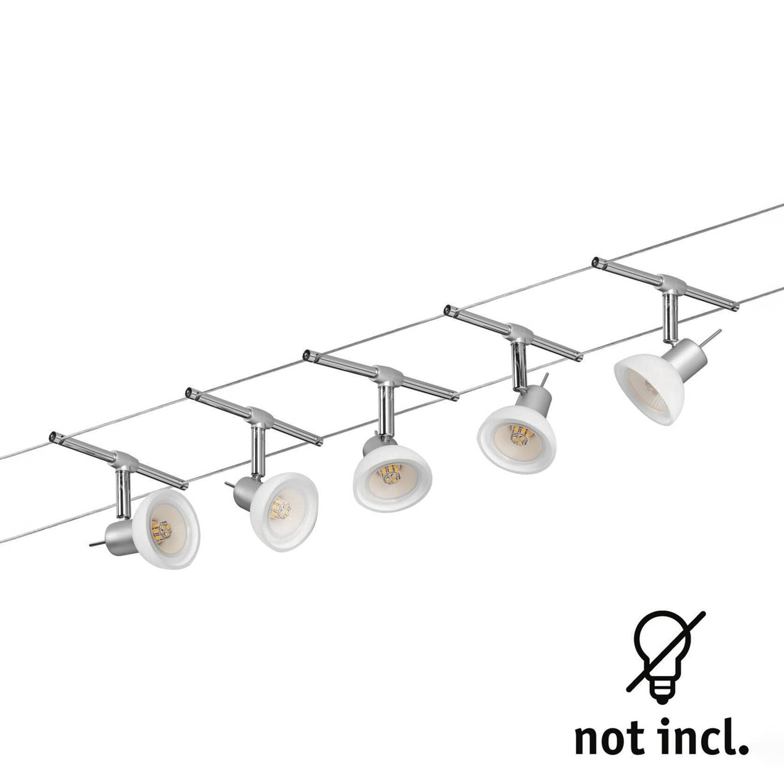 Paulmann Sheela lankový systém 5zdrojů chrom matný, Chodba, kov, sklo, GU5.3 / MR16, 10W, P: 500 cm, L: 16 cm