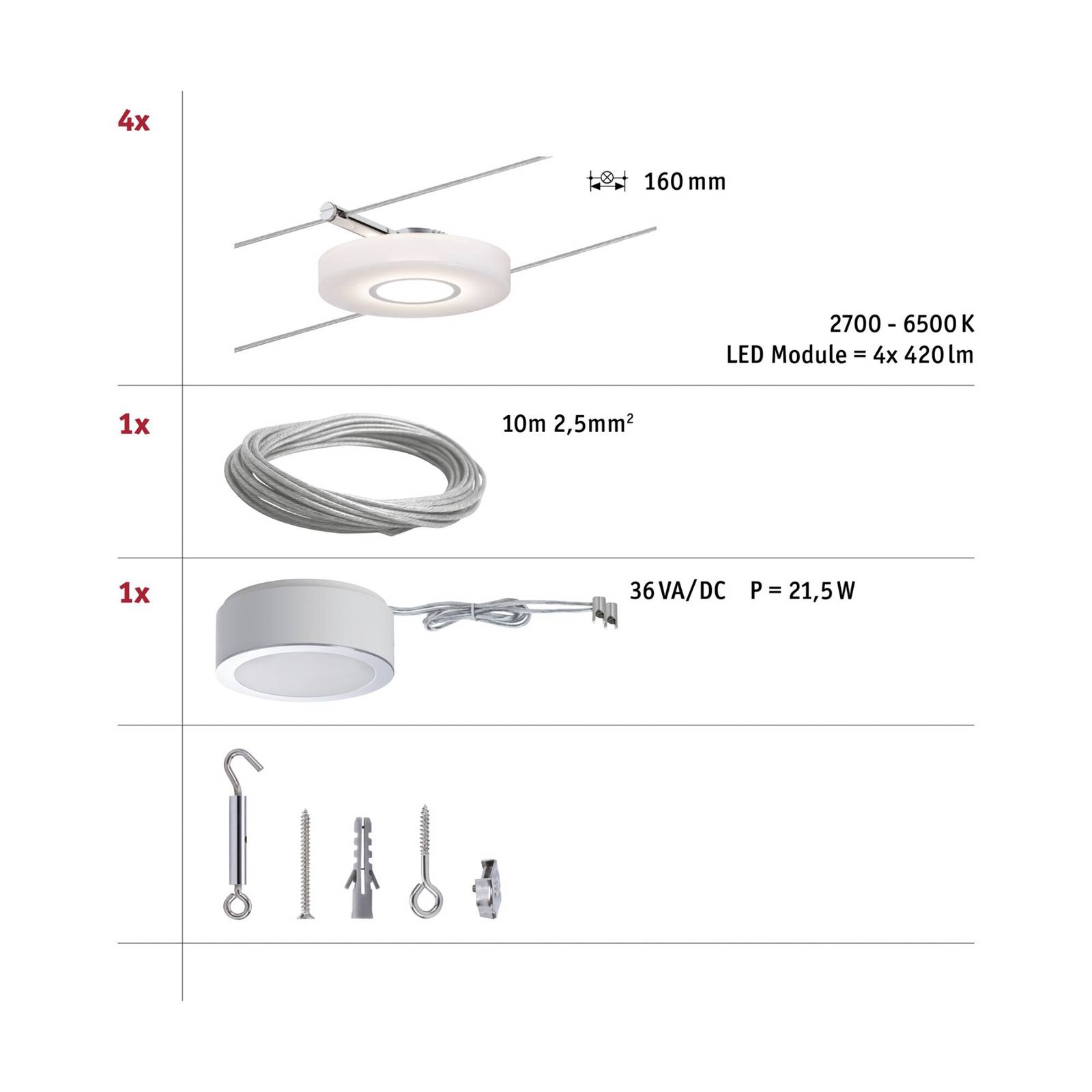 Paulmann DiscLED I lankový systém 4x Bluetooth, Obývací pokoj / jídelna, kov, plast, 4W, P: 500 cm, L: 16 cm