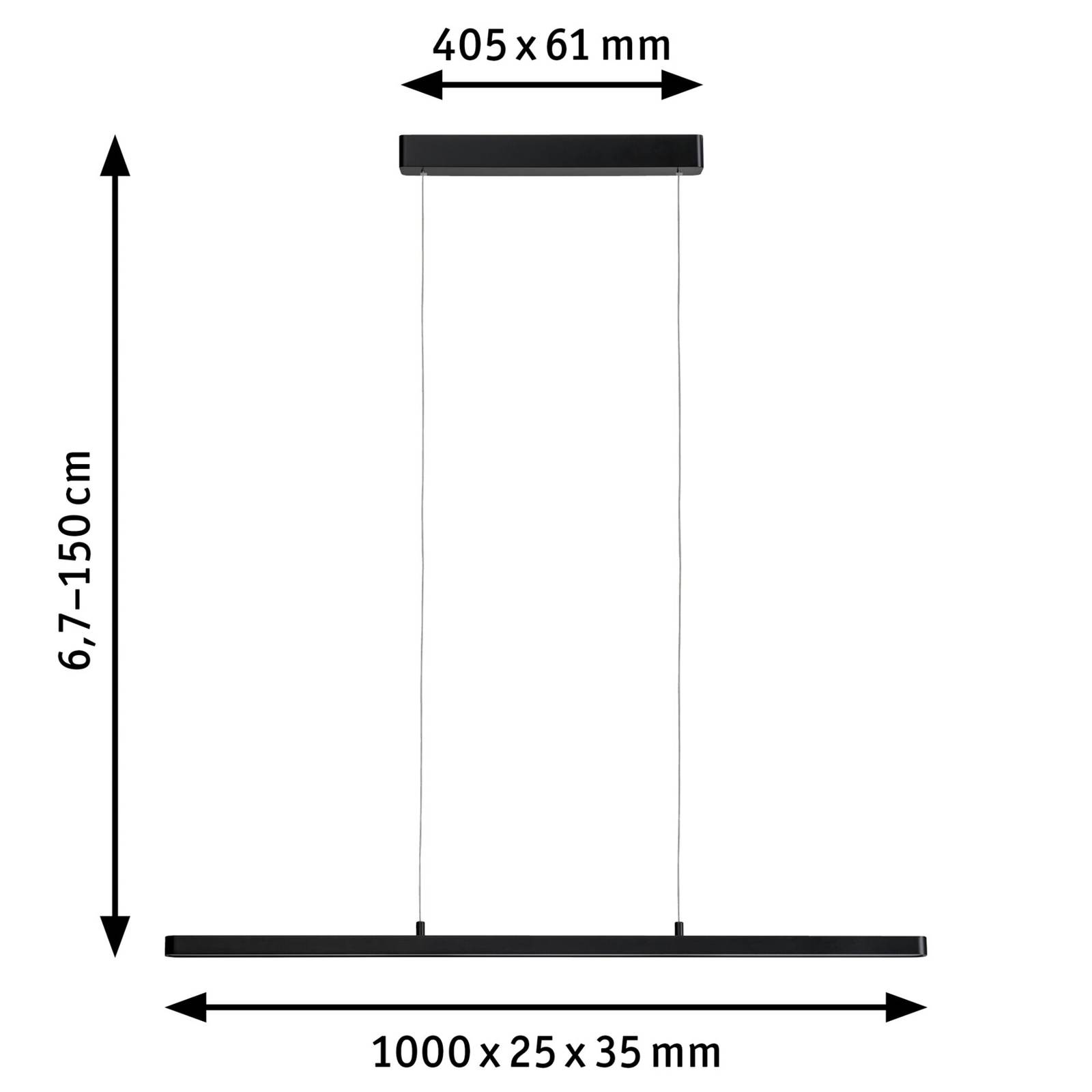 Paulmann Lento LED závěsné ZigBee CCT dim černá, Obývací pokoj / jídelna, hliník, plast, 13.5W, P: 100 cm, L: 3.5 cm, K: 2.5cm