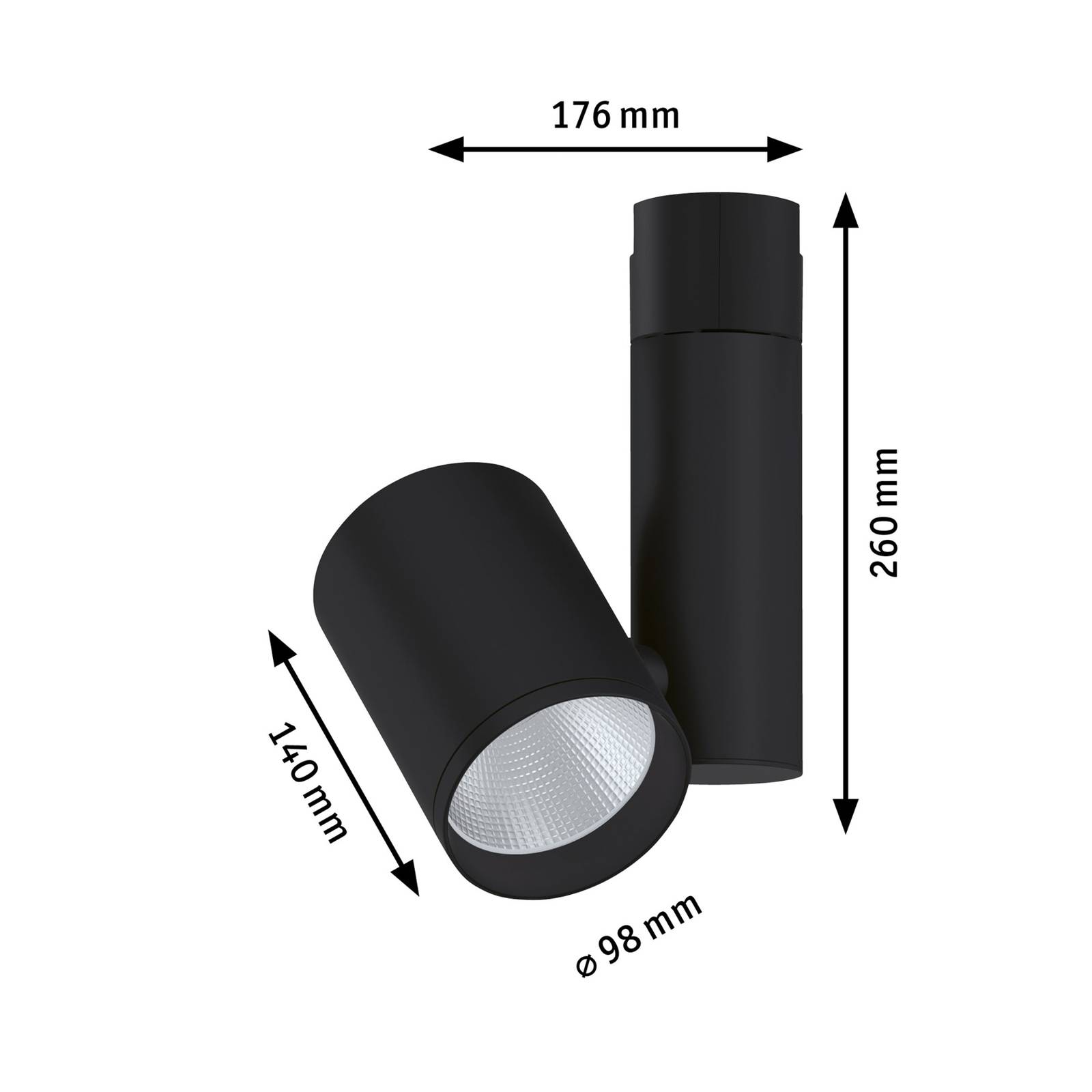Paulmann Zeuz URail Spot 3 000K 39° černá matná, Chodba, Kov, 38W, P: 26 cm, L: 9.8 cm, K: 17.6cm