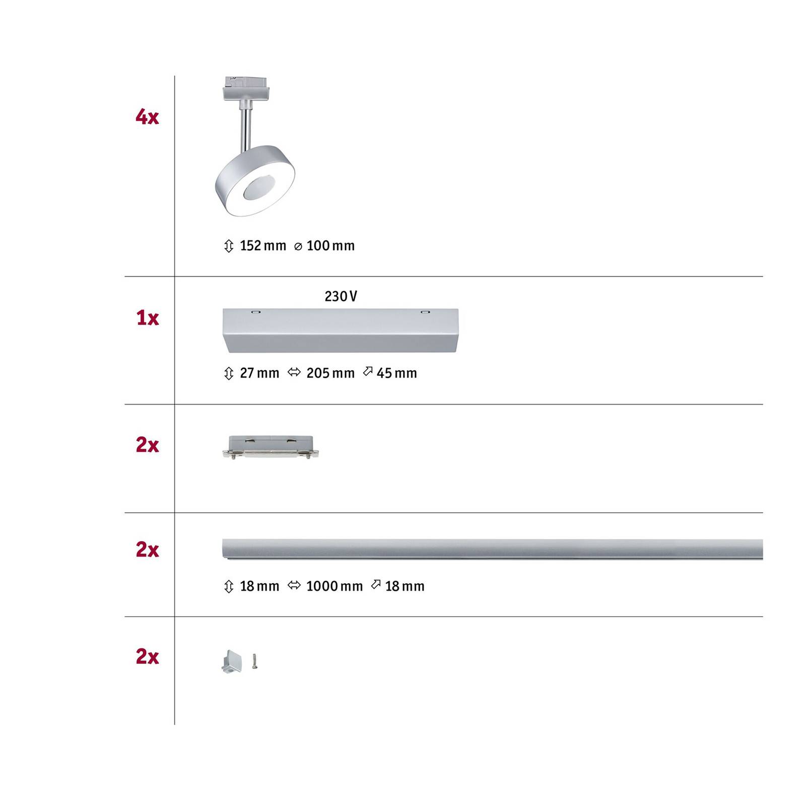 Paulmann URail Circle 4 bodová světla 2700K chrom, Obývací pokoj / jídelna, plast, kov, 5.3W, P: 220 cm, K: 15.2cm