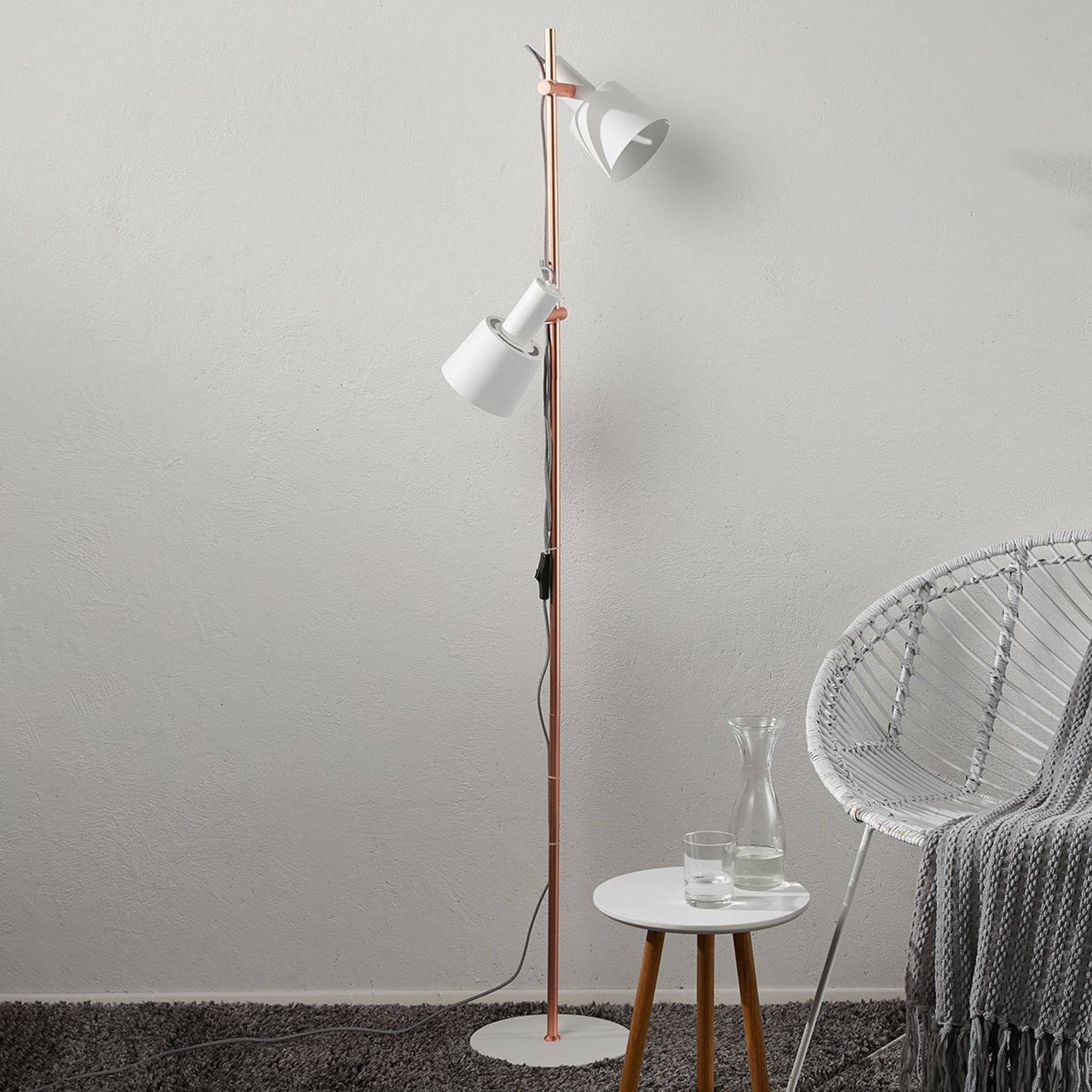 Paulmann Haldar stojací lampa 2 zdroje v bílé/měď, Obývací pokoj / jídelna, kov, textil, E14, 20W, K: 152cm