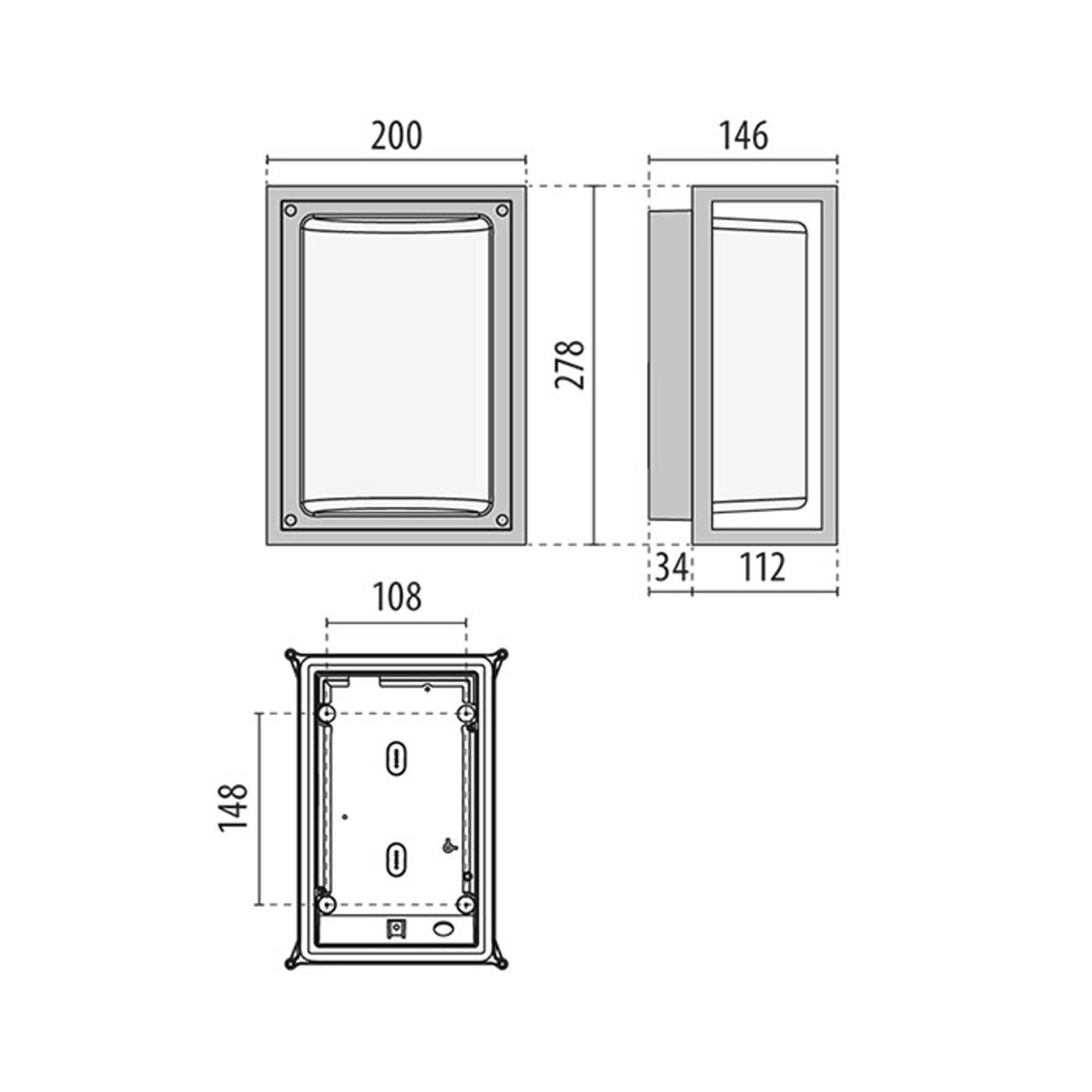 Performance in Lighting LED venkovní nástěnné světlo Eko+19 3000K šedá, hliníkový odlitek, sklo, 10W, L: 25.4 cm, K: 18.7cm