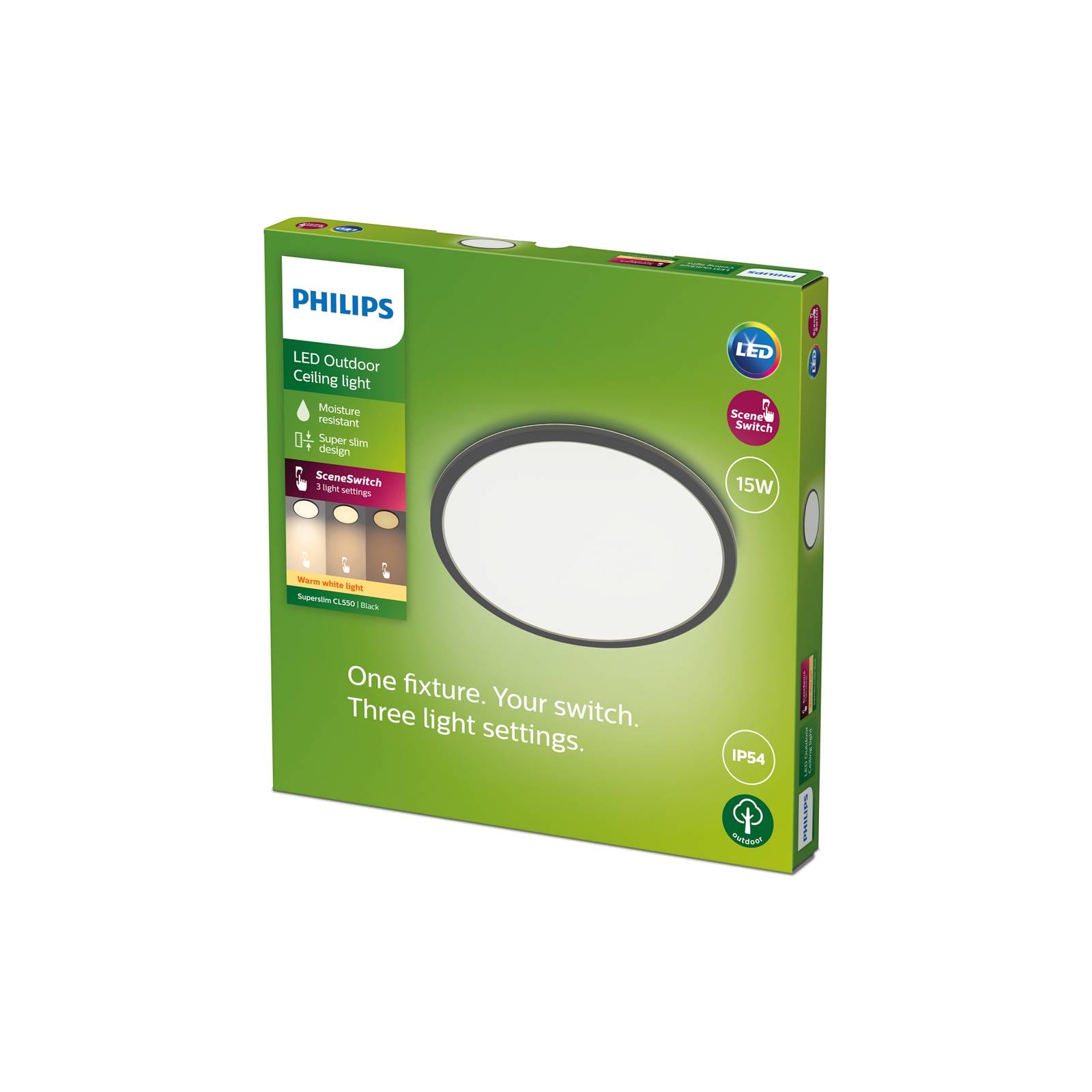Philips SuperSlim LED IP54 Ø 25cm 2 700K černá, kov, 15W, K: 2.3cm
