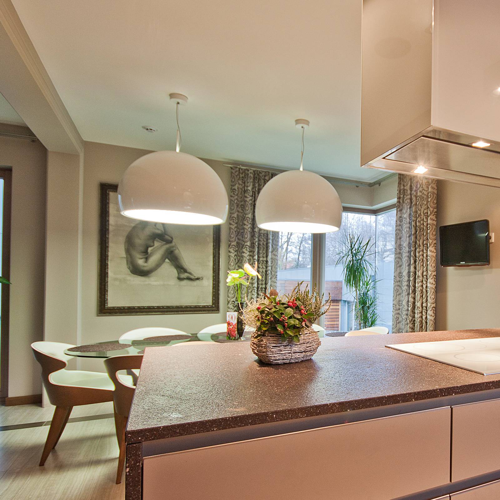 Prandina Notte S3 závěsné světlo, chrom lesk/bílá, Obývací pokoj / jídelna, sklo, E27, 150W, K: 30.5cm