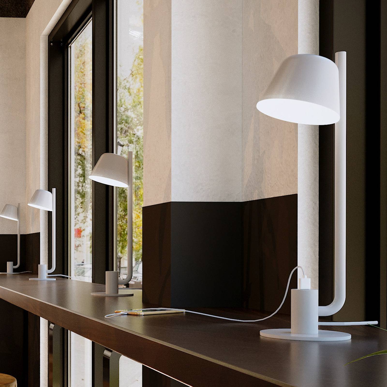 Prandina Bima T1 USB LED stolní lampa, bílá, Pracovna / kancelář, kov, plast, 4.8W, K: 50cm