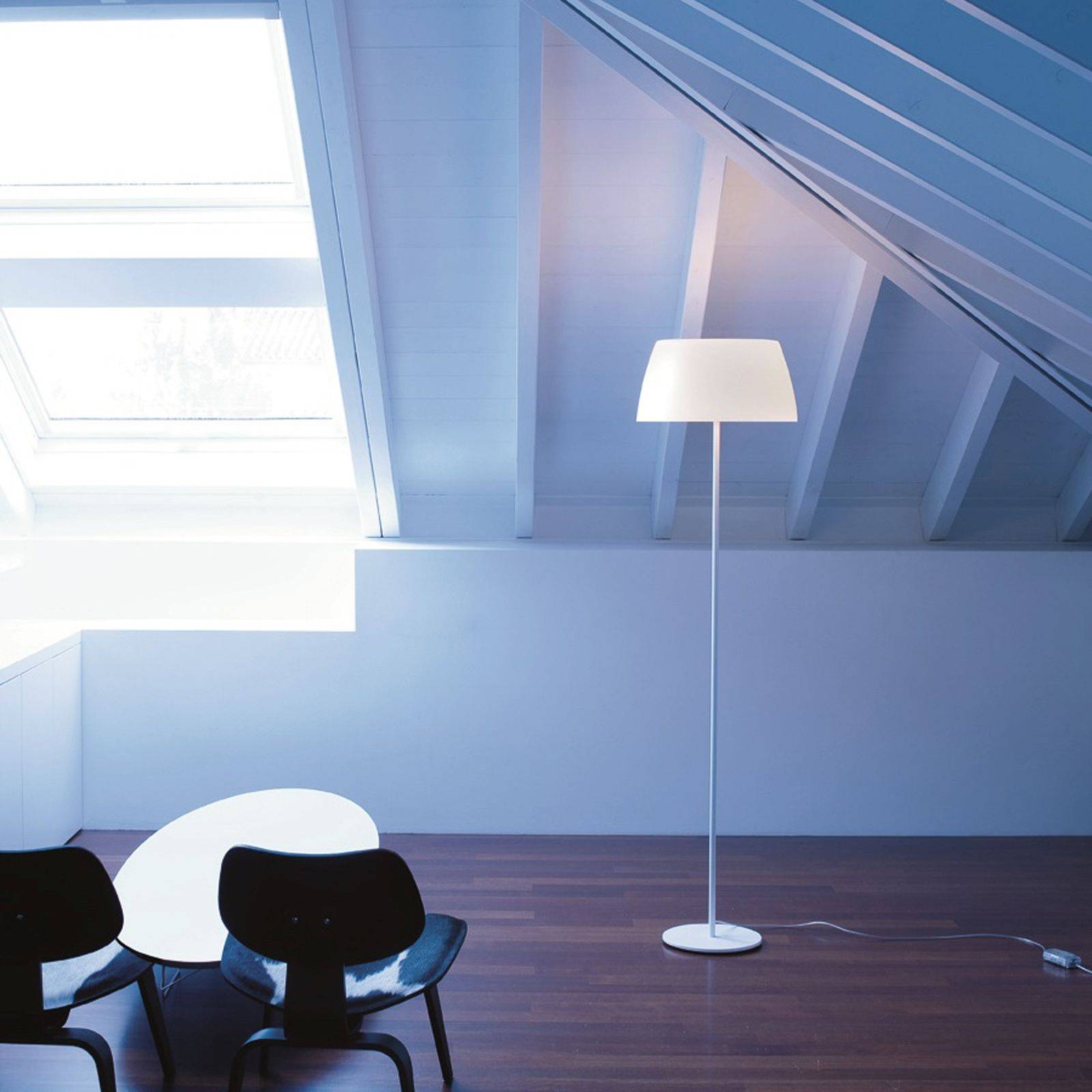 Prandina Ginger F30 stojací lampa, bílá, Ø 36 cm, Obývací pokoj / jídelna, polyetylen, methakrylát, kov, E27, 12W, K: 150cm